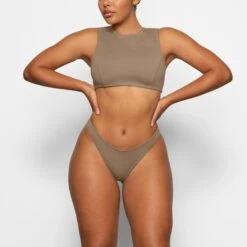 that targets the tummy and core. This everyday staple has adjustable straps, double-layered fabric on the bra, and a brief back for medium coverage. In between sizes? Size up for ideal fit.
