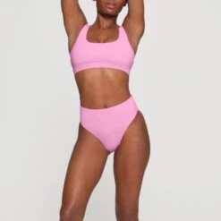 with lightly molded cups that define your bust and raw edges at the legs for a comfortable fit with no digging. Features adjustable, convertible straps for versatile wearability, large side cut-outs with bonded edges, an open low back with a smoothing back band, and a gusset with snap closure. Fits true to size.