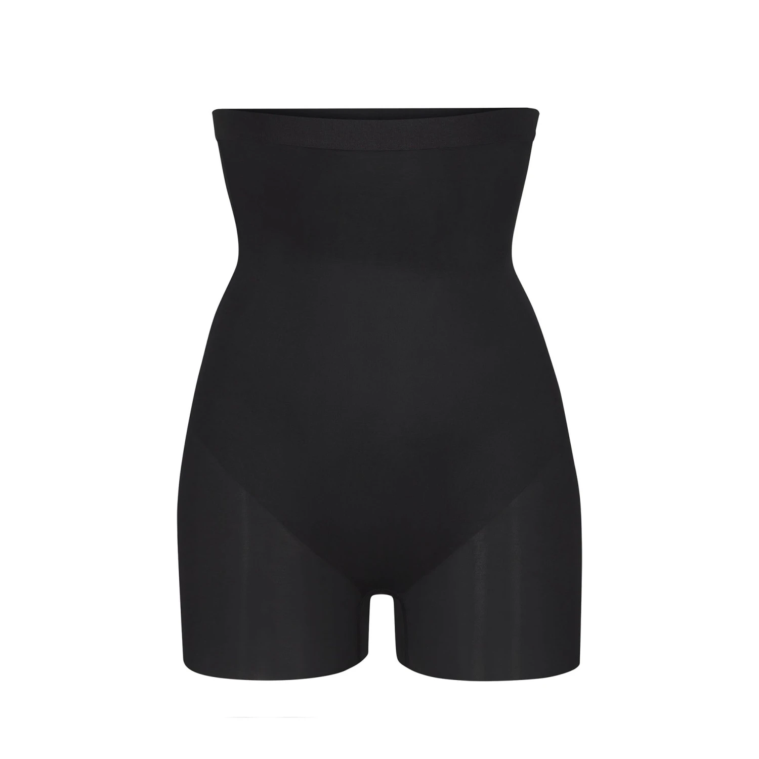 This high-waist short hits above mid-thigh to perfectly smooth your core, hips, and thighs. Features a comfortable elastic waistband, plus double-layered fabric at the mid-core for smoothing and compression. Wear with mini-length skirts and dresses for a seamless look.