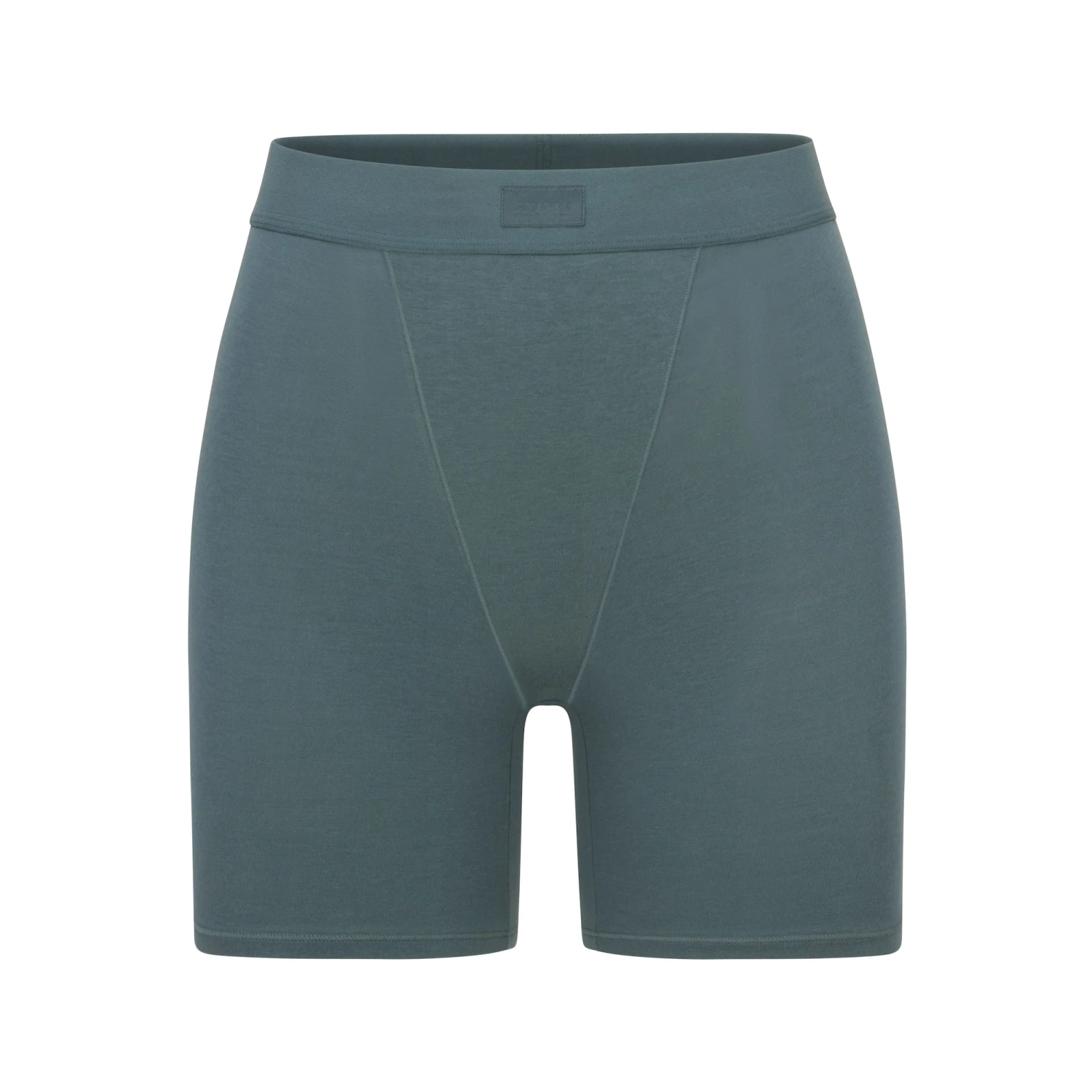 A classic boxer short made of super soft, lightweight stretch jersey. Features a tonal SKIMS logo on the soft elastic waistband and faux front fly stitching. Wear alone or as a