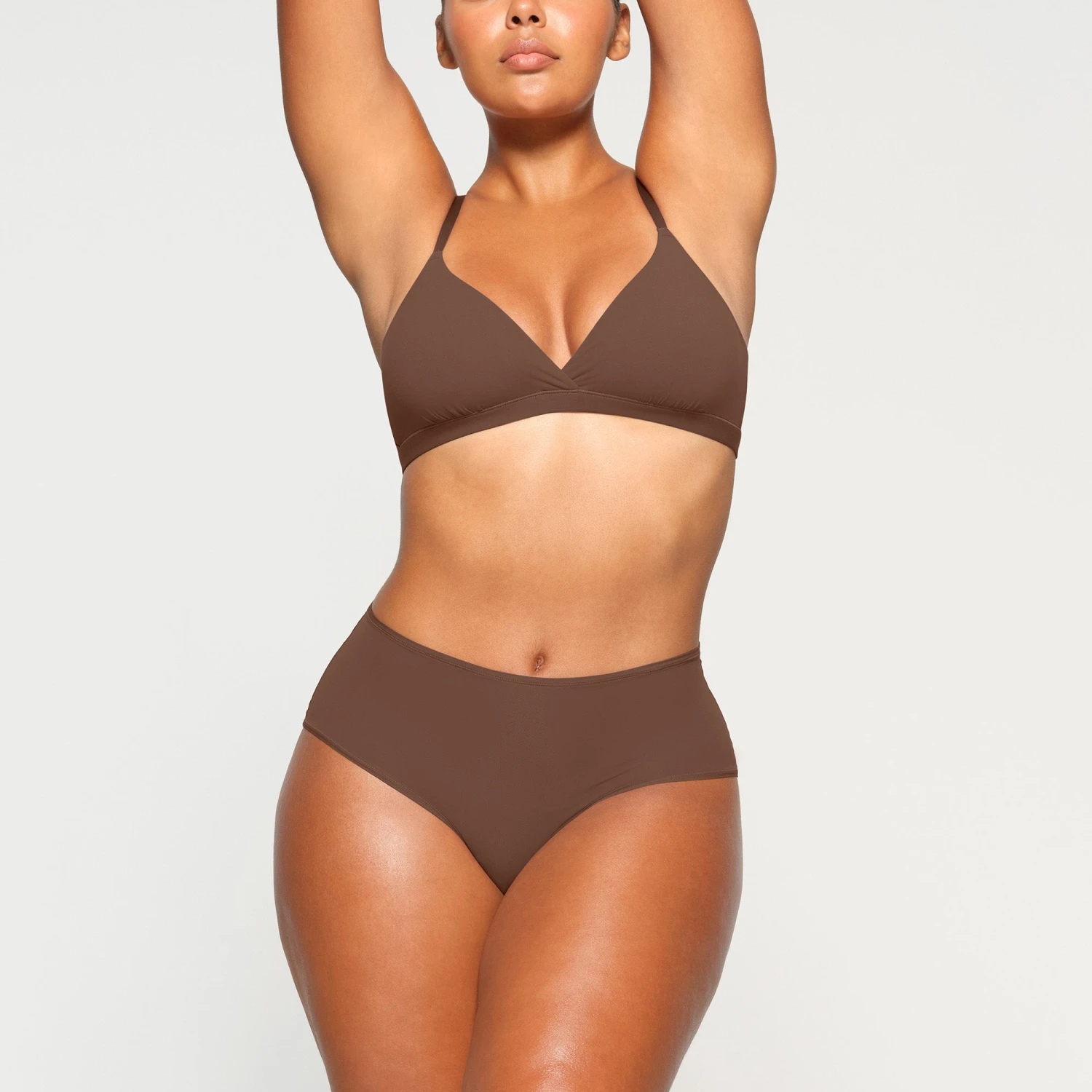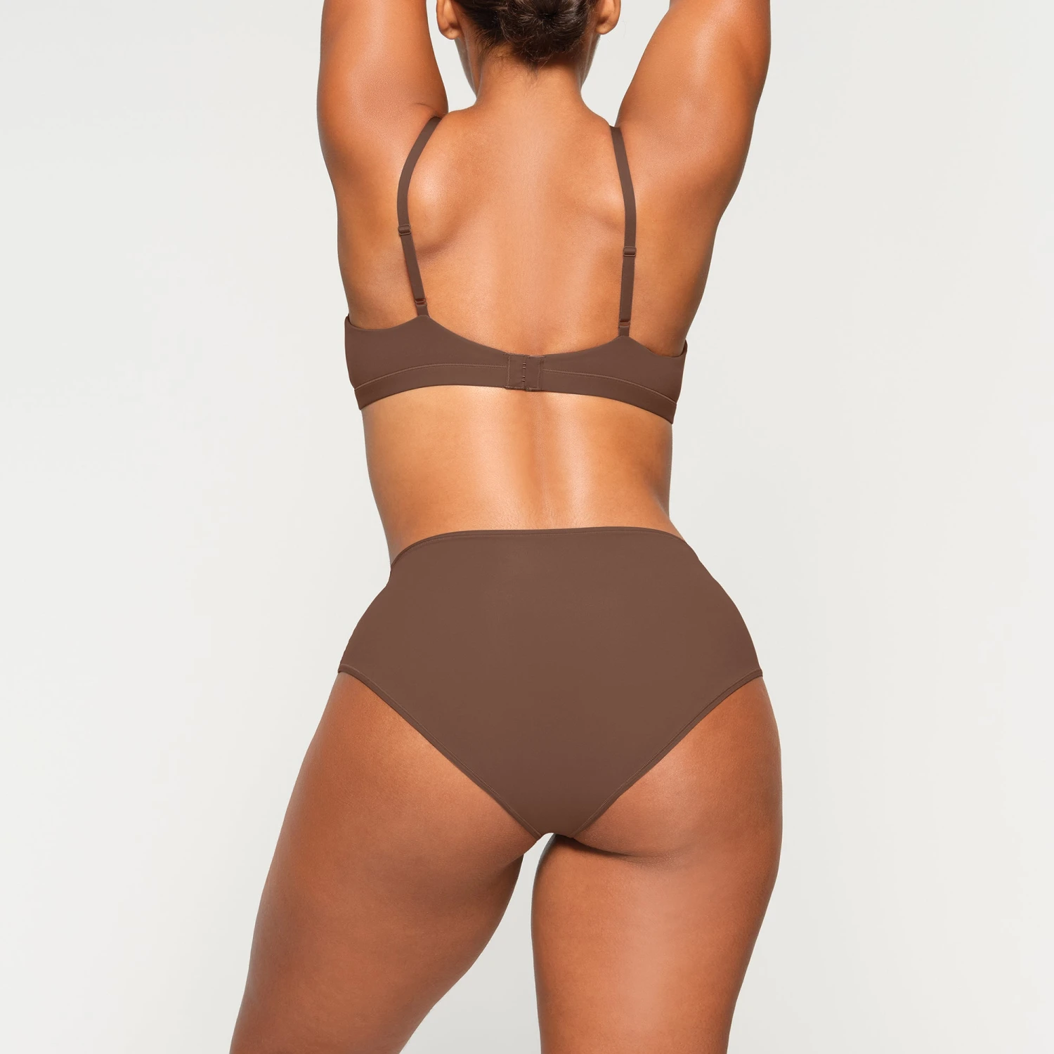 with a super-soft, stretchy feel and flattering full coverage fit. Features a no cut design that prevents digging and leaves a seamless appearance under clothing.