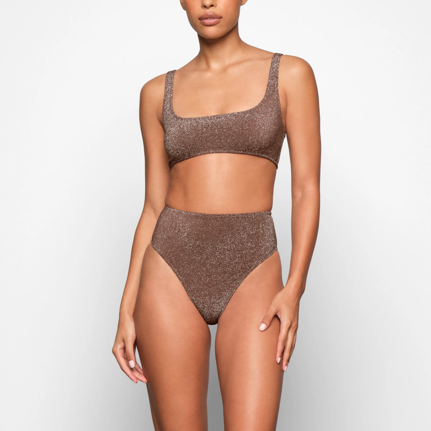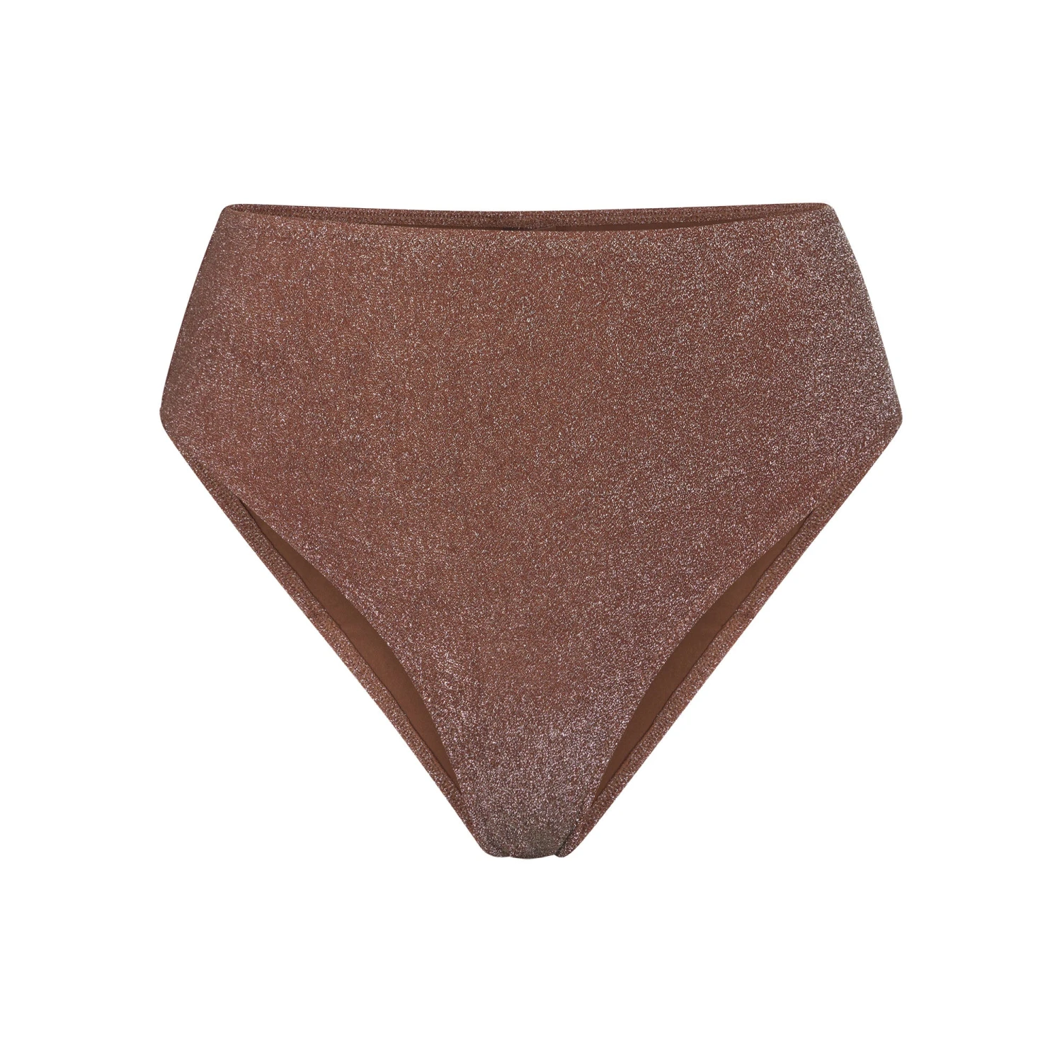 . Features a high-cut leg opening, medium back coverage, and recycled polyester lining. Fits true to size.