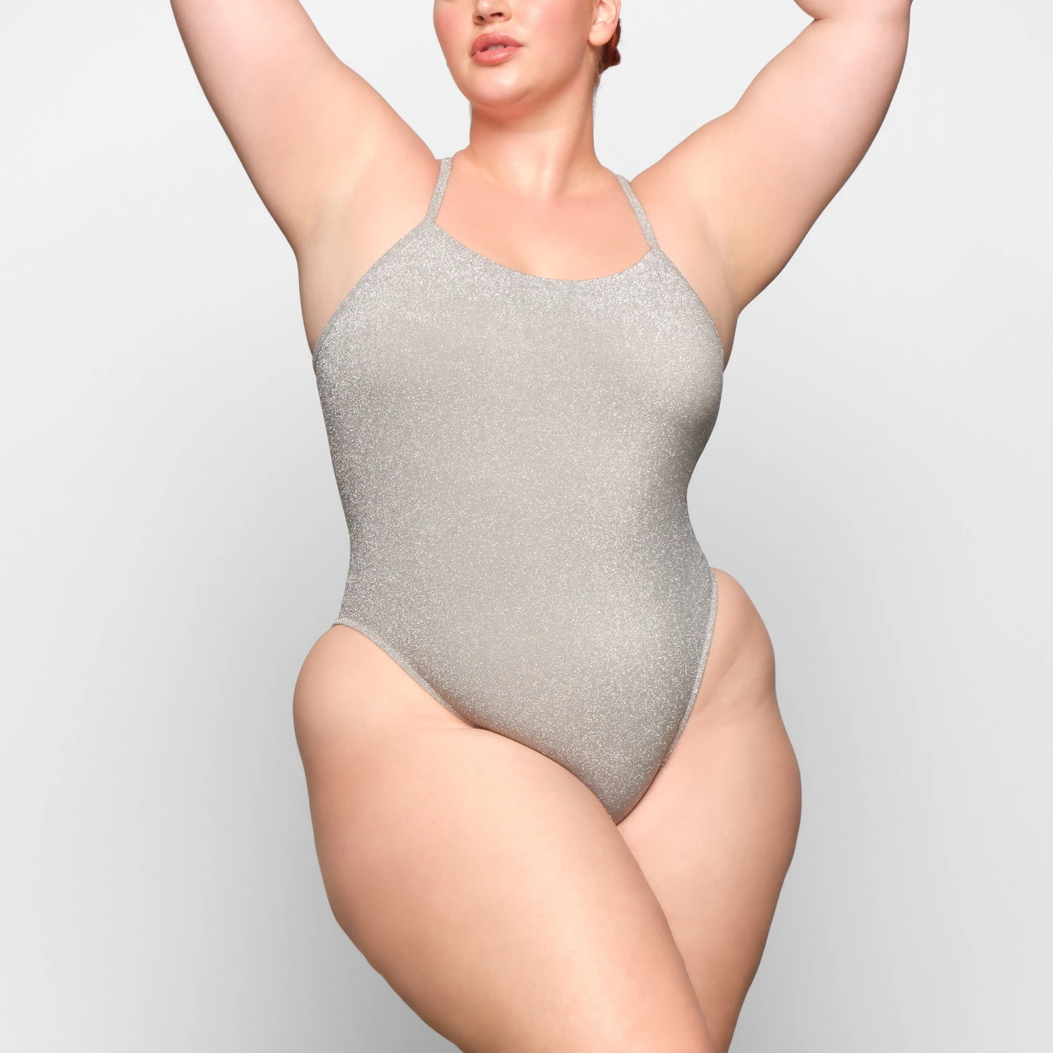 Bring the glitz and glamour in this ultra-luxe, sparkly classic one-piece