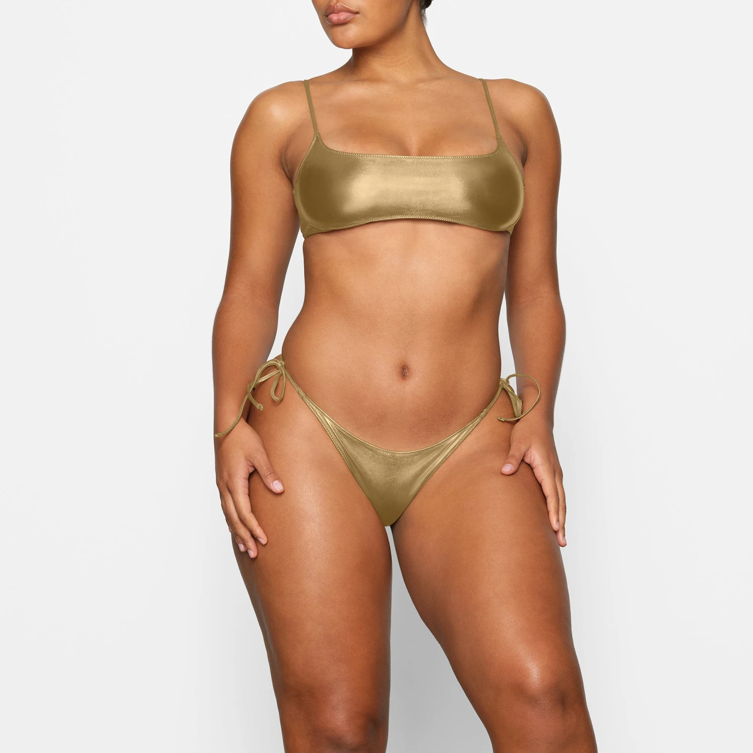 is a must-have. Features thin straps, an adjustable tie-back, and micro coverage. Match it to your favorite Metallic
