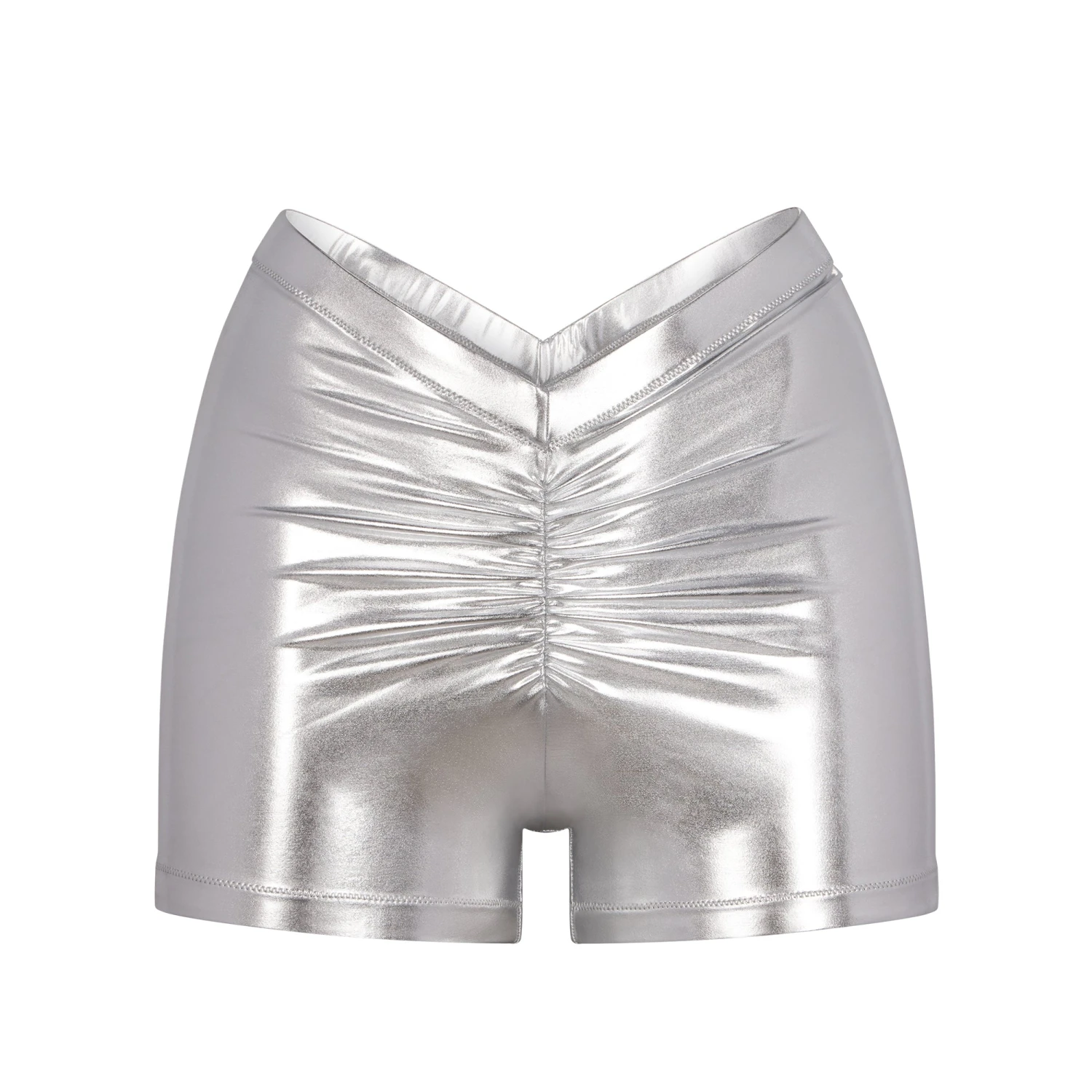 shorts, now with a dipped front waistband and back. Features a light lining and flattering ruching along the center front and back seams. Fits true to size.