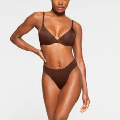 With an ultra-flattering v-shape and buttery-soft second-skin fit, this full-coverage pullover style has it all for ultimate comfort and everyday wearability. This wireless silhouette has smoothing straps and support around the back and side for extra smoothing. Features removable cups, wide non-adjustable straps, and a tonal matte 3D SKIMS logo. Fits true to your SKIMS bra size. Complete your set with our selection of