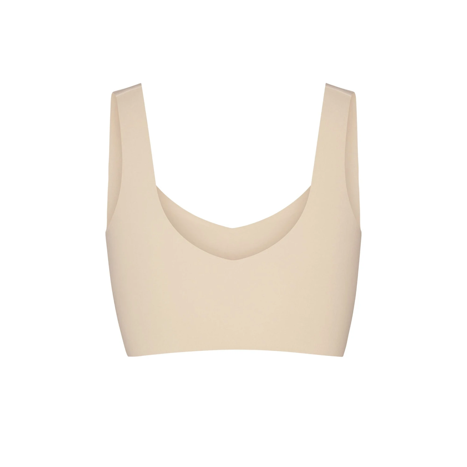 With an ultra-flattering v-shape and buttery-soft second-skin fit, this full-coverage pullover style has it all for ultimate comfort and everyday wearability. This wireless silhouette has smoothing straps and support around the back and side for extra smoothing. Features removable cups, wide non-adjustable straps, and a tonal matte 3D SKIMS logo. Fits true to your SKIMS bra size. Complete your set with our selection of