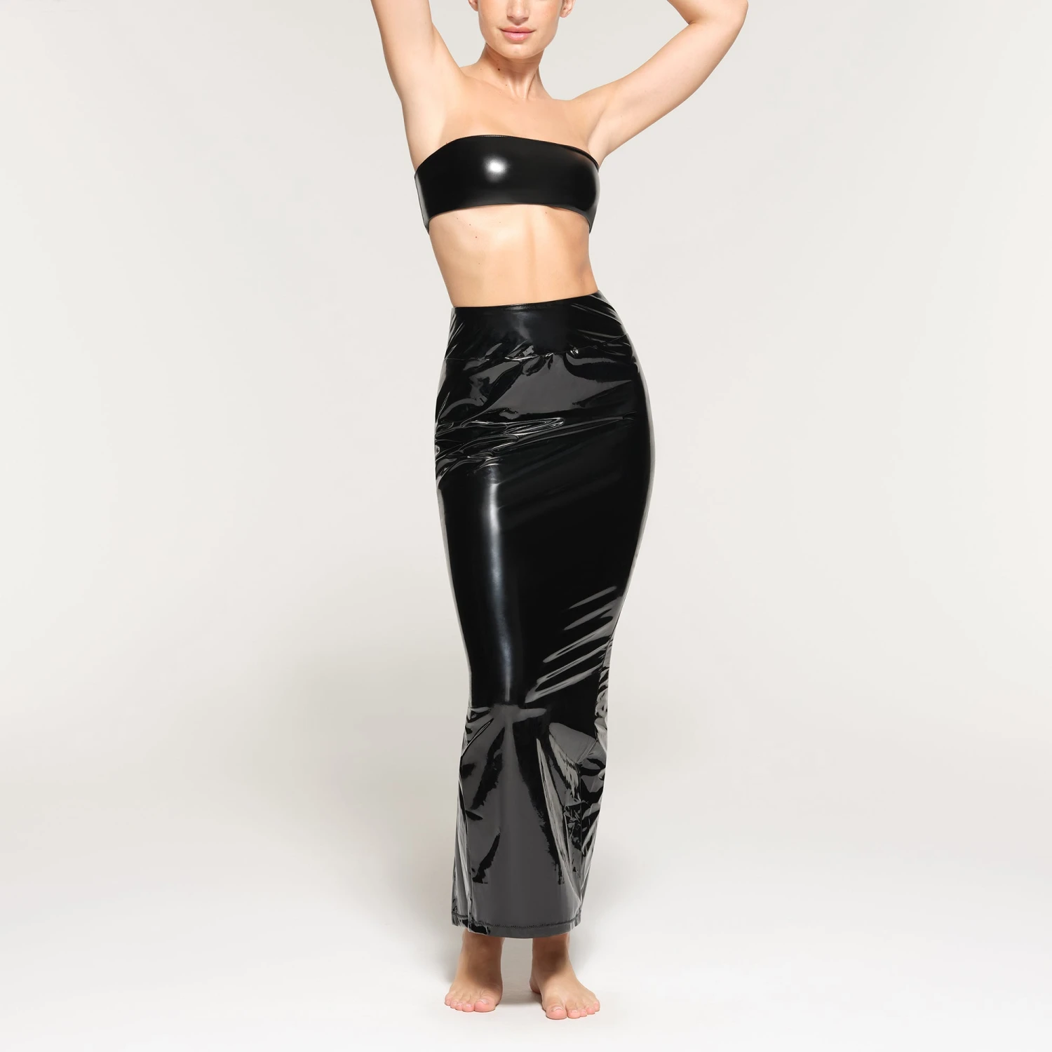 Make an entrance in this edgy, curve-hugging full-length maxi