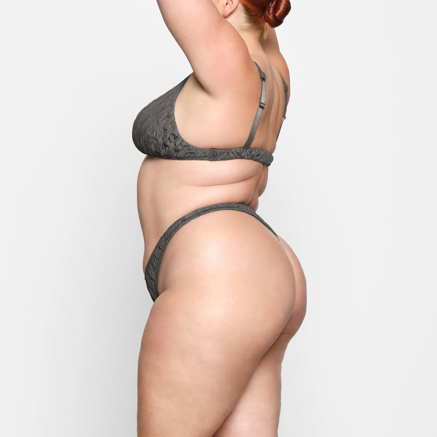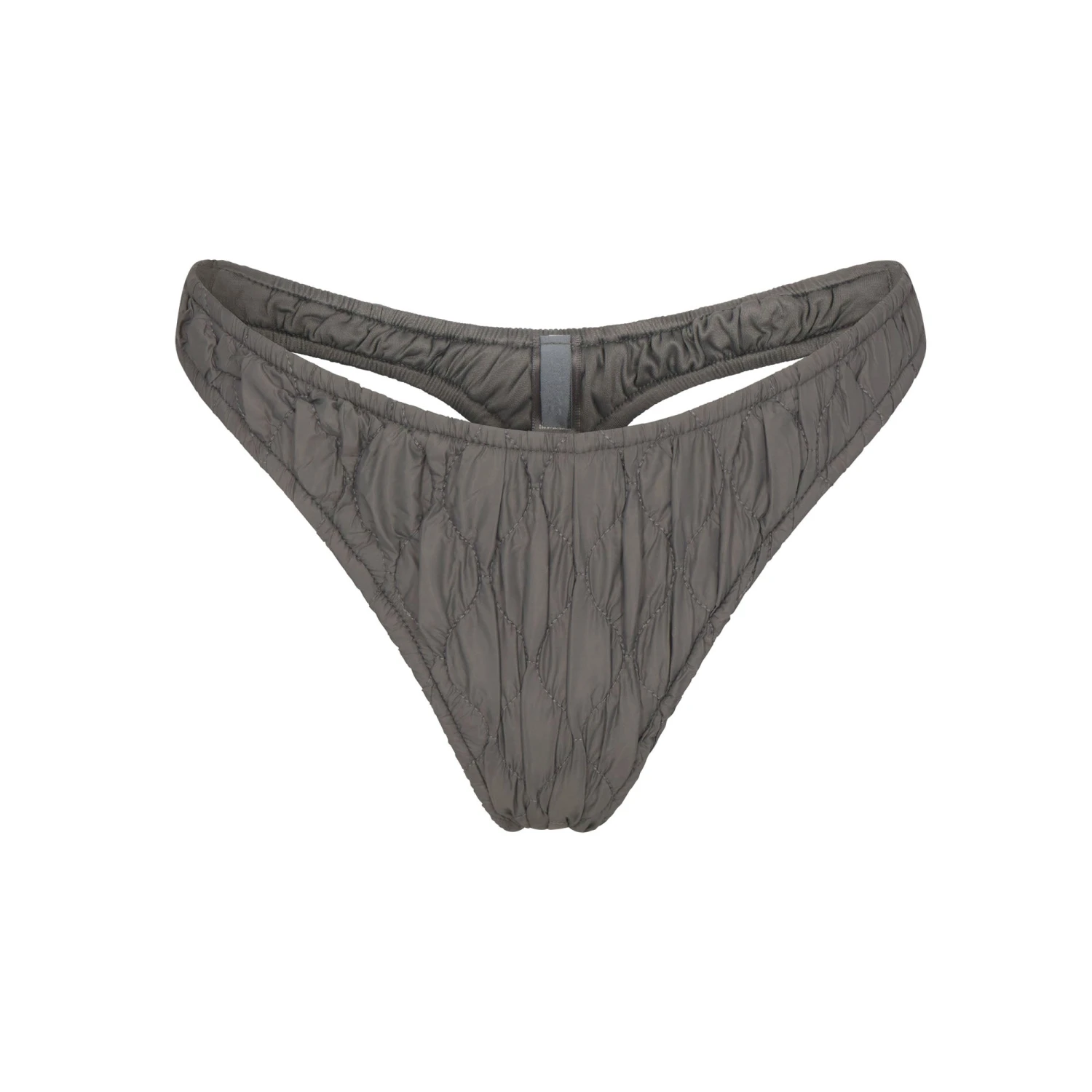 has a comfortable elastic waistband and minimal back coverage. Features tonal branded label on center front waistband. Pair with Quilted Thong and Duvet Robe for an indoor lounge set that’s all about comfort. Fits true to size.