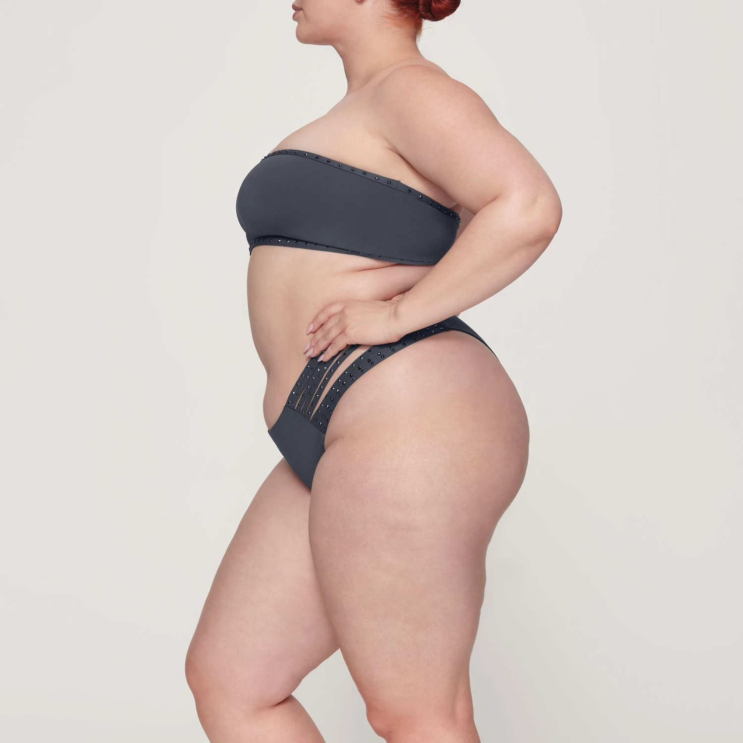 with perfectly-placed tonal rhinestones for an elevated look. Features silicone along the top and bottom band to keep it in place. Pair with the coordinating
