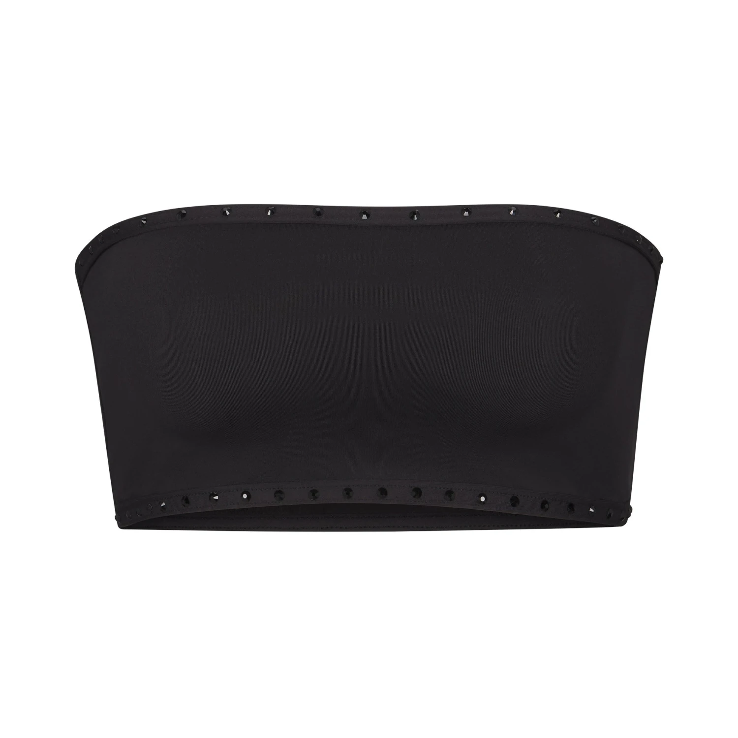 with perfectly-placed tonal rhinestones for an elevated look. Features silicone along the top and bottom band to keep it in place. Pair with the coordinating