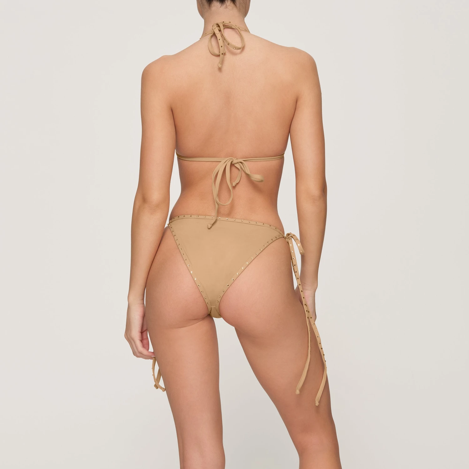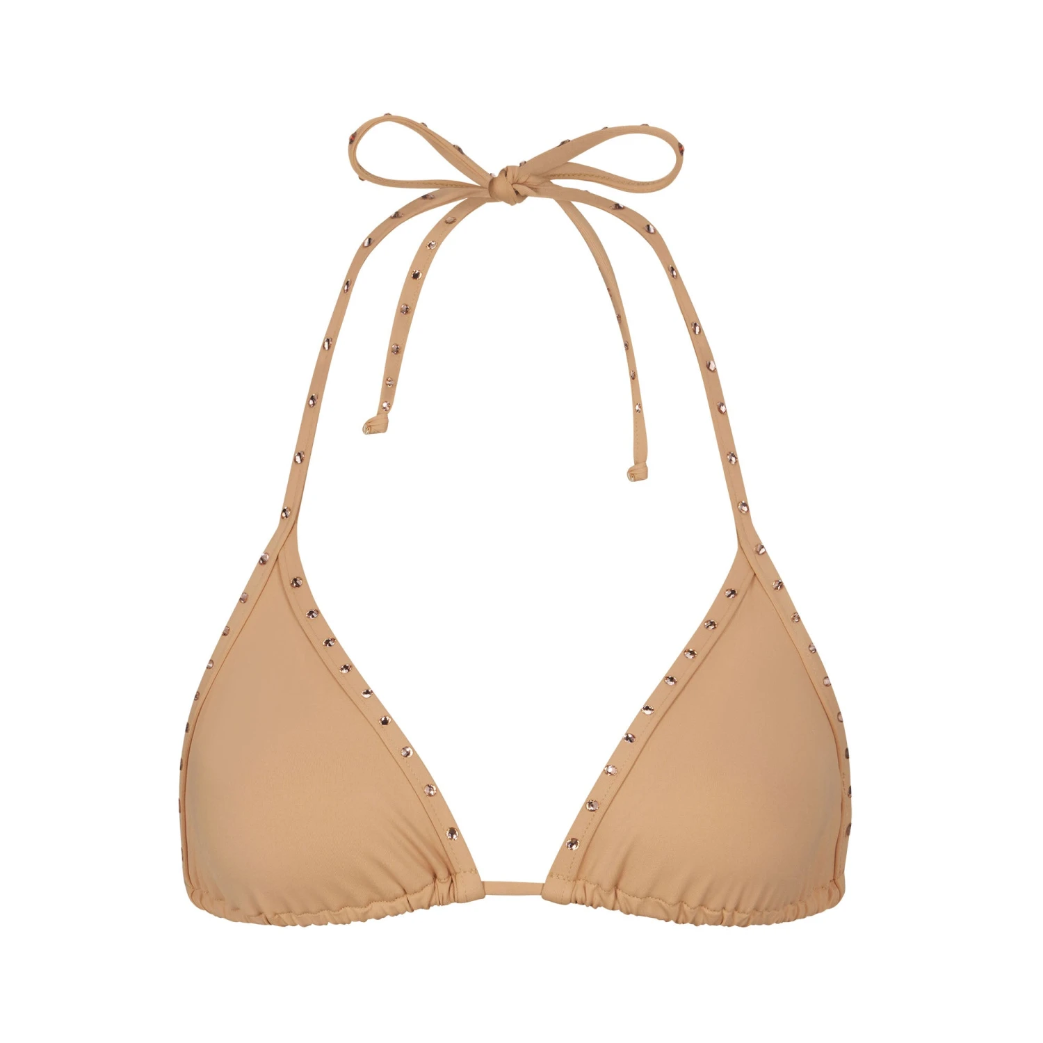 with sparkle details that make a statement. Features tonal rhinestones on binding and neck ties. Pair with coordinating