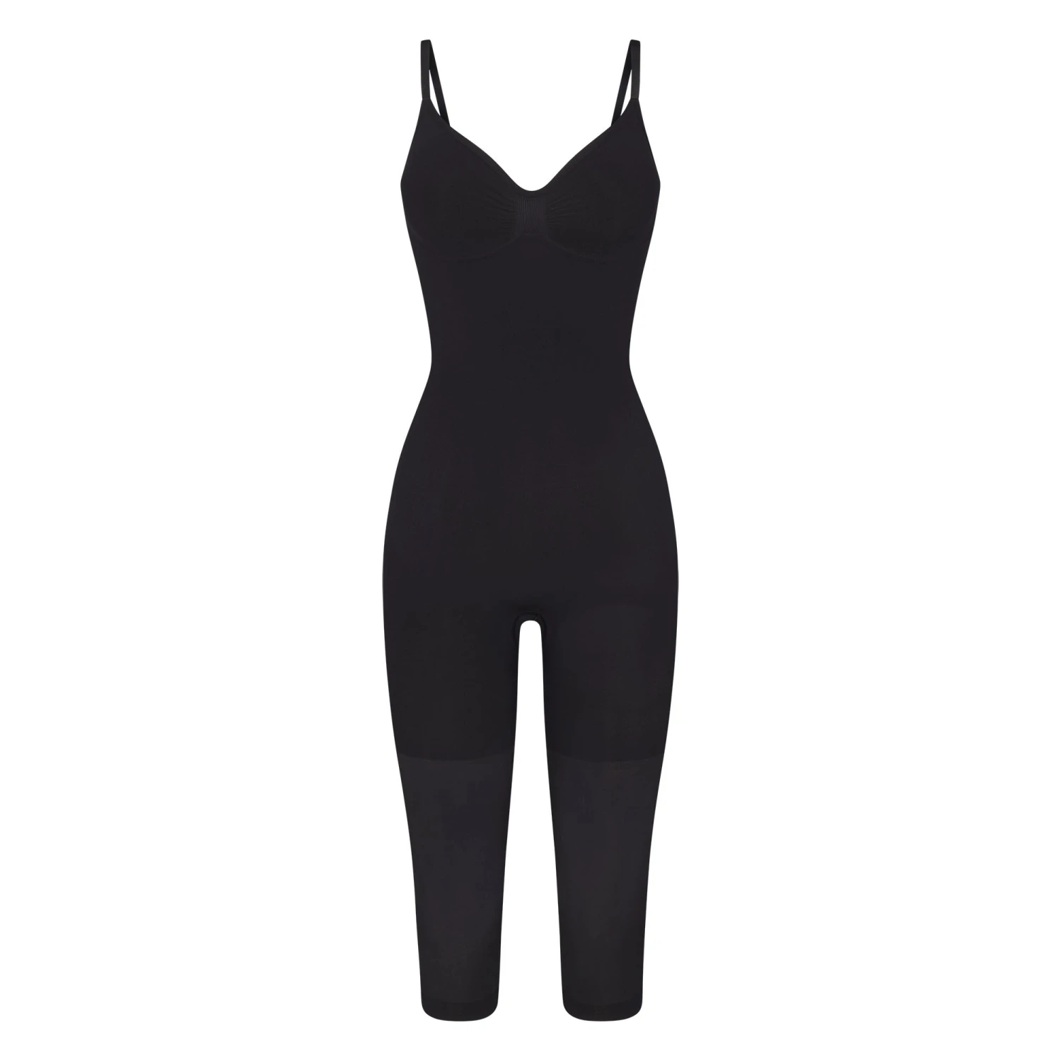 is the ultimate full-length sculpting solution for under your long skirts, dresses, and pants. Features adjustable straps, pique stitching along the center front and sides for bust support and definition, and targeted mid-thigh compression with smoothing hosiery legs. Fits true to size.