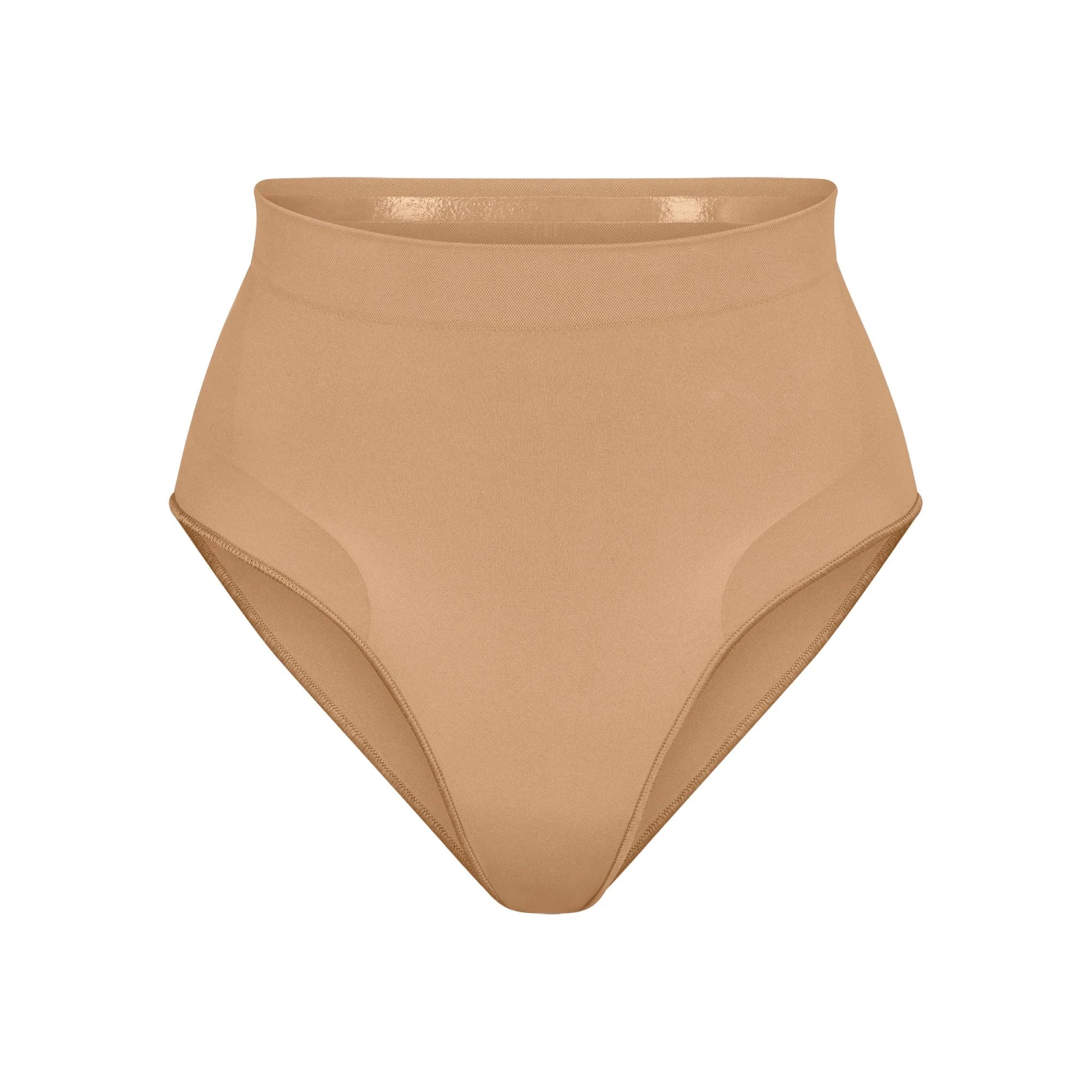 that has strong compression along the tummy and waist and large round butt pockets that lift your butt perfectly. Features a brief back, cotton gusset, a wide crotch for added coverage, and an interior silicone underband that prevents rolling. Fits true to size.