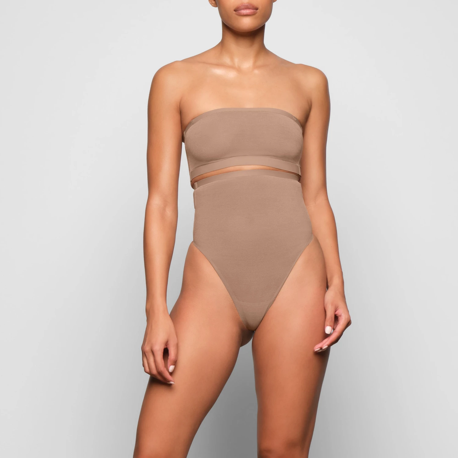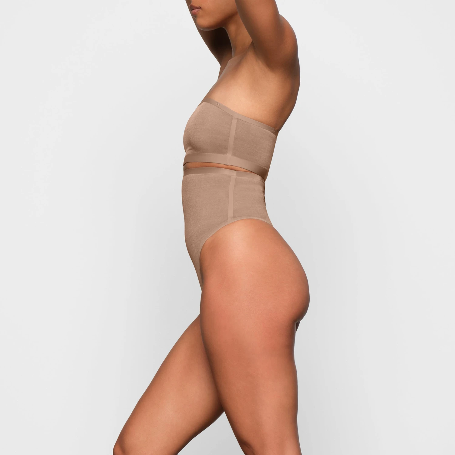 The Sheer Sculpt High Waist Thong offers full coverage smoothing and targeted compression for waist and tummy, with an ultra-high fit that sits underneath your bra line with a