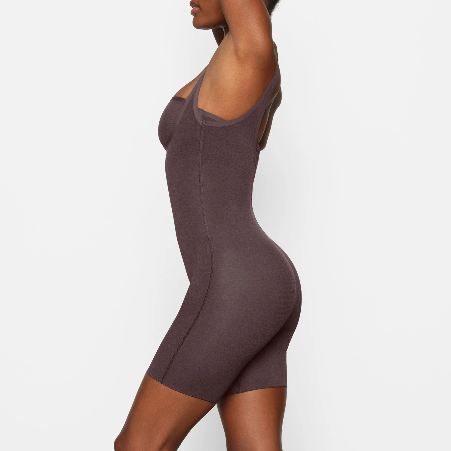 Invisible under everything, this sheer bodysuit holds in your core, smooths your upper thighs, and lifts and shapes your butt. Its silky construction and extra low back make this