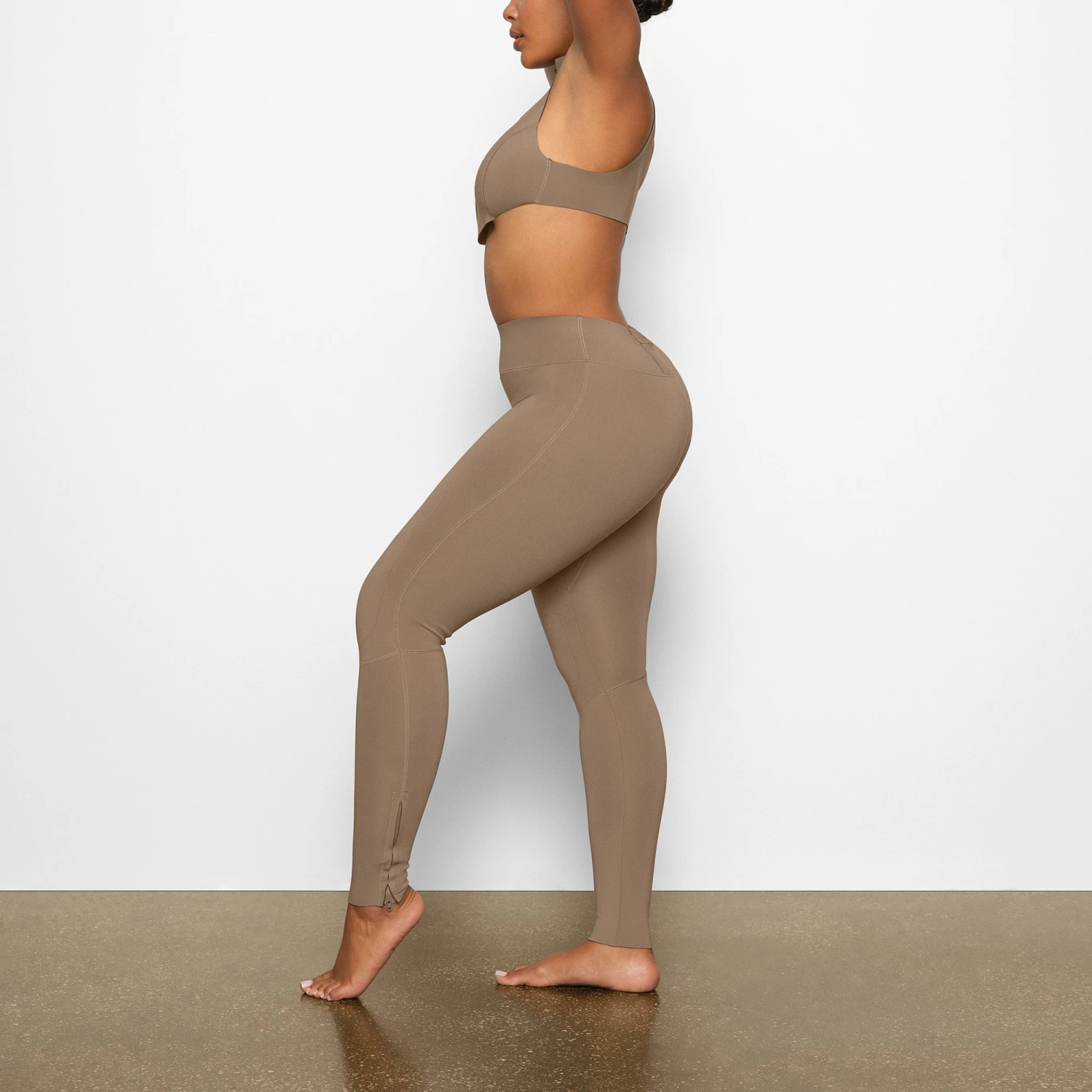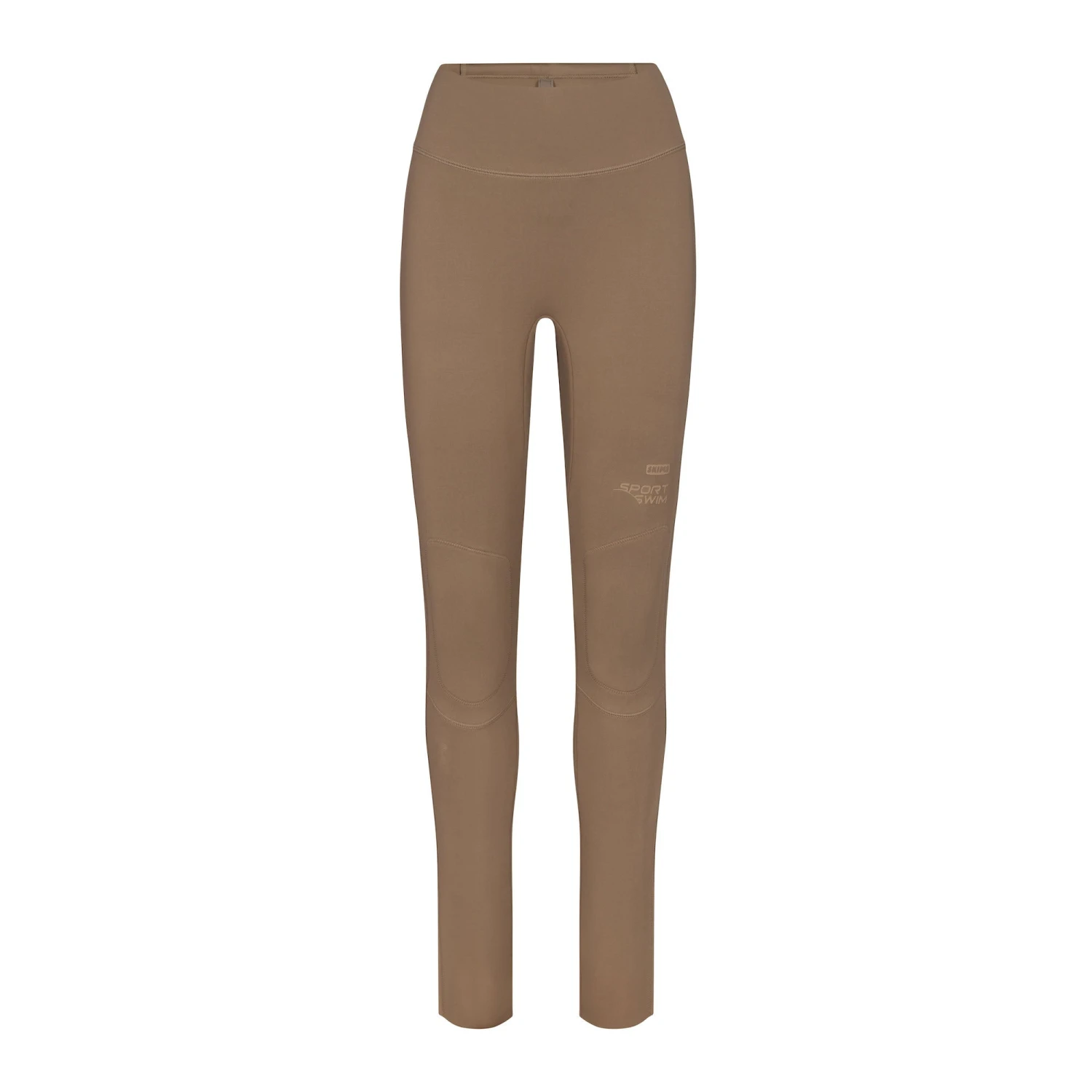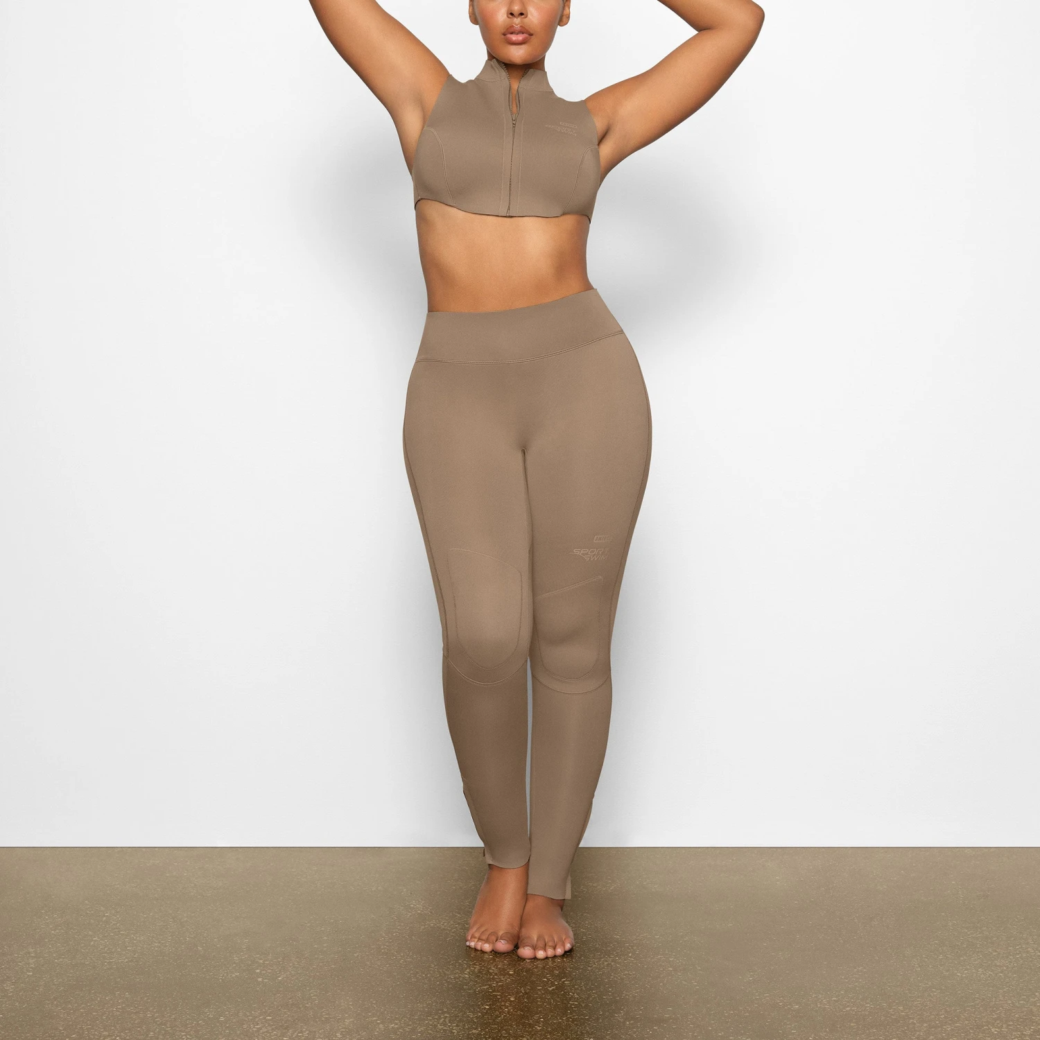 with a mid-rise, full-length fit and zip details at the ankle and center back. Features a glossy tonal SKIMS logo, plus an extra layer of neoprene at the knees. Fits true to size.