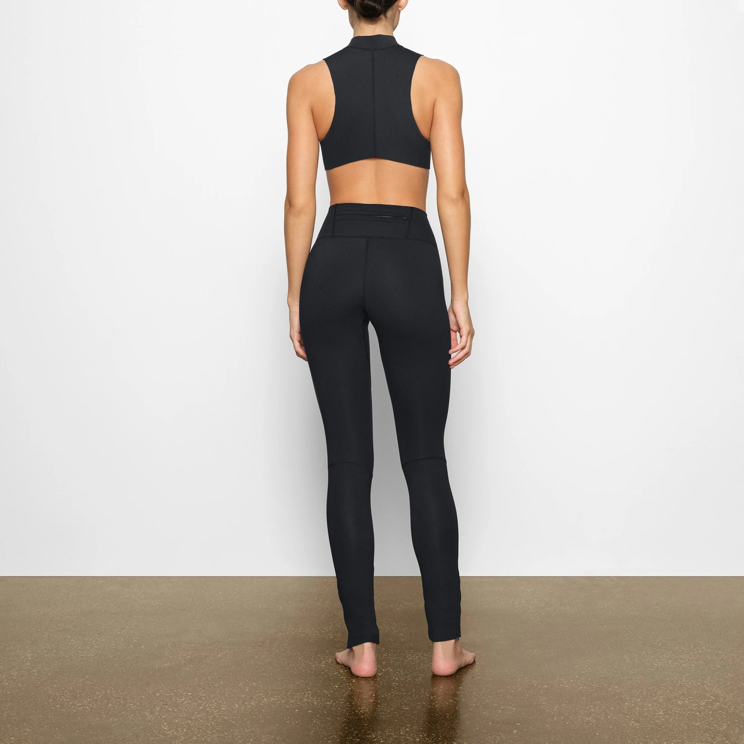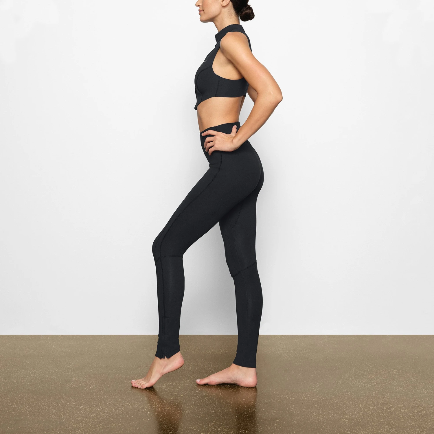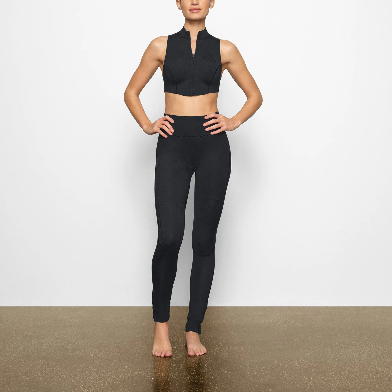 with a mid-rise, full-length fit and zip details at the ankle and center back. Features a glossy tonal SKIMS logo, plus an extra layer of neoprene at the knees. Fits true to size.