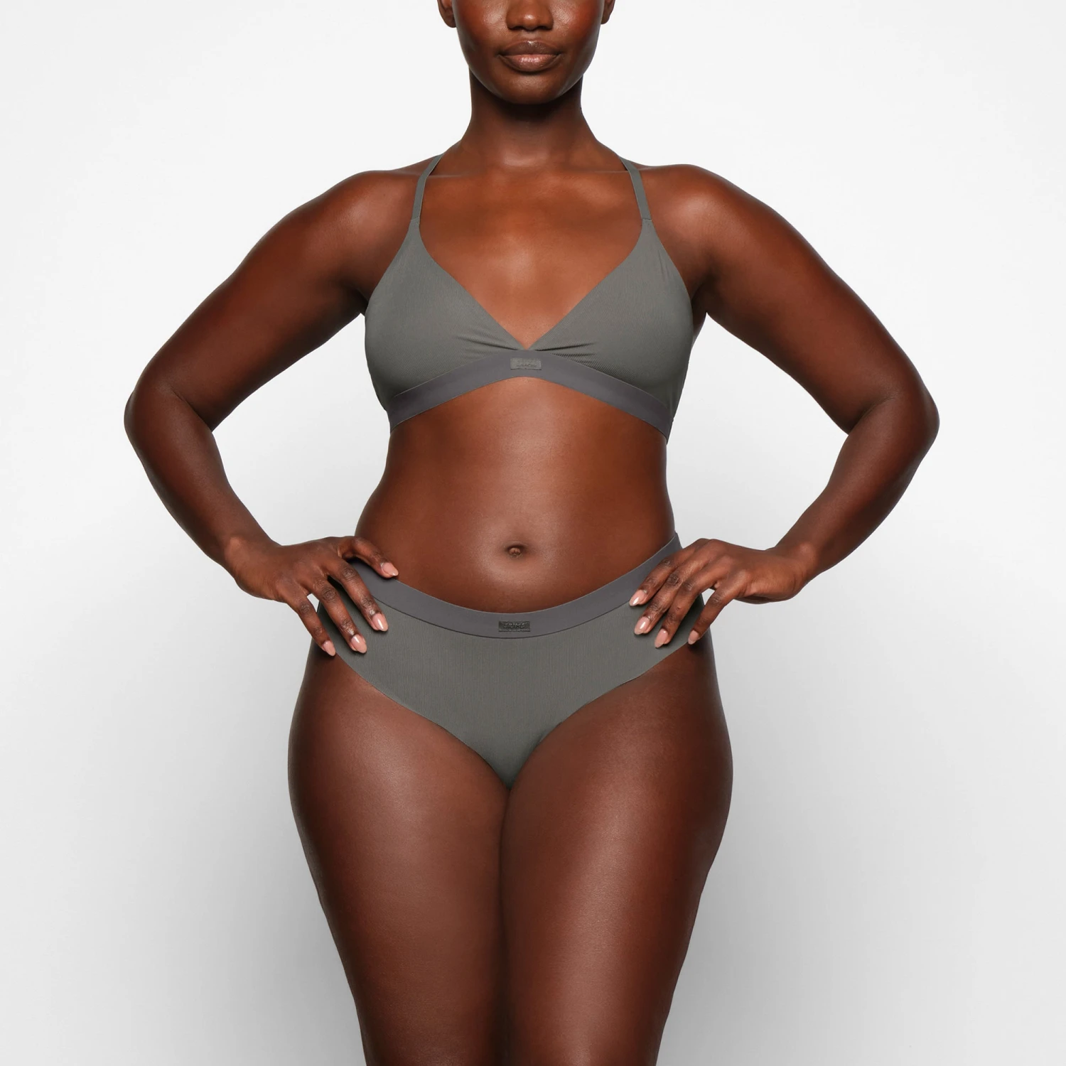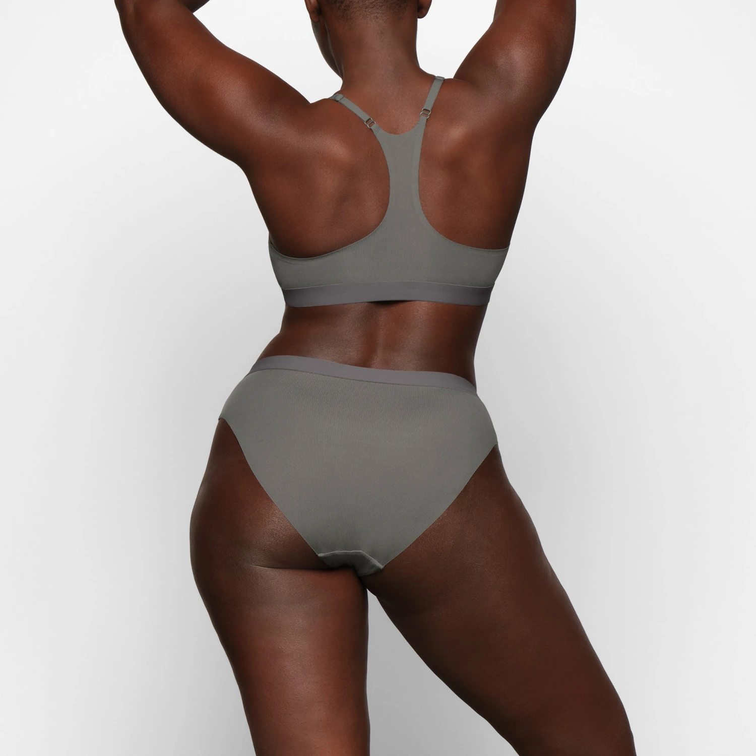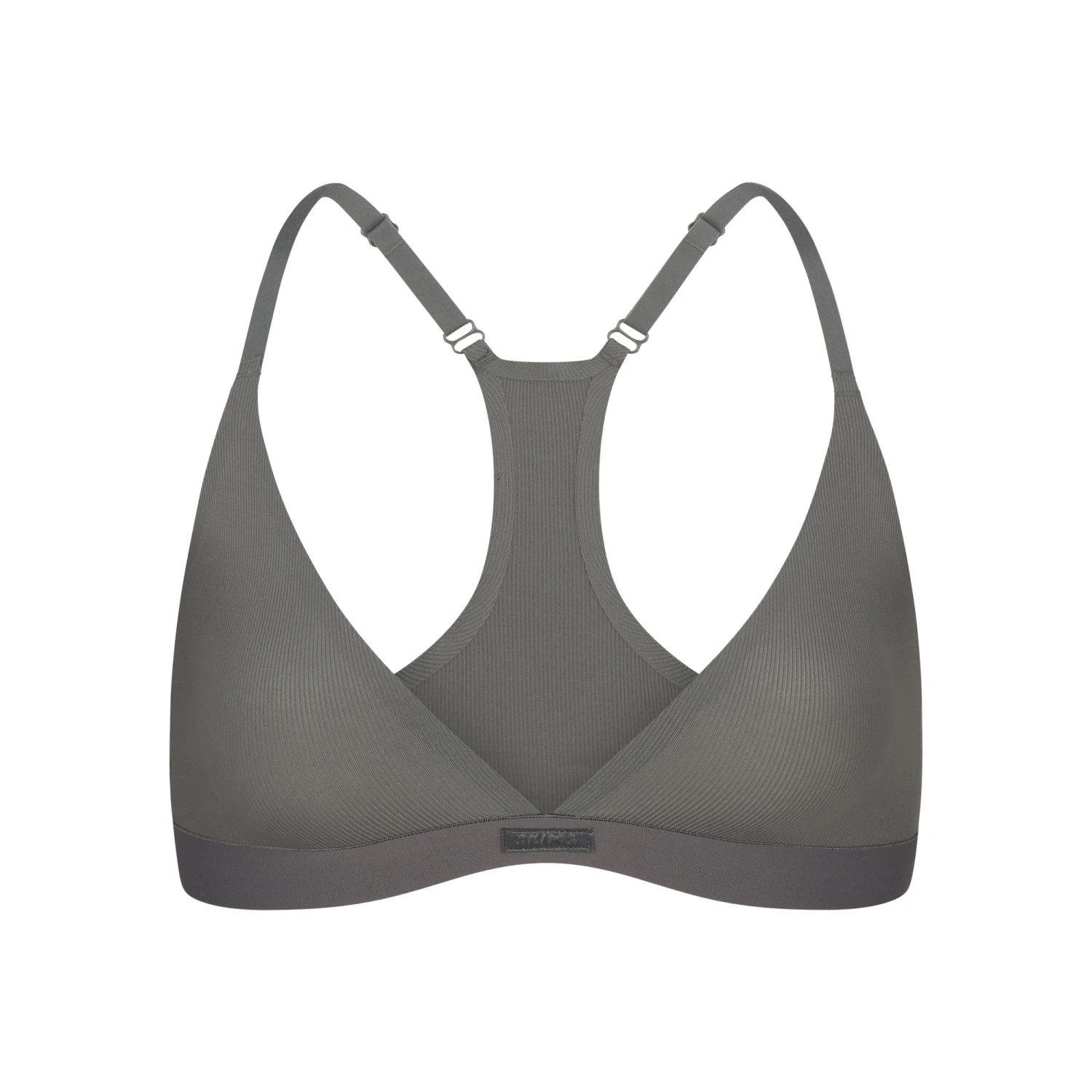 is crafted with an ultra-comfy ribbed microfiber fabric that takes comfort to another level. Features racerback straps and a supportive underband with a tonal logo on the front center. Fits true to size.