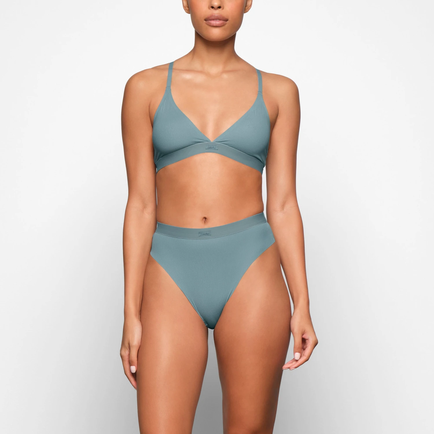 is crafted with an ultra-comfy ribbed microfiber fabric that takes comfort to another level. Features racerback straps and a supportive underband with a tonal logo on the front center. Fits true to size.