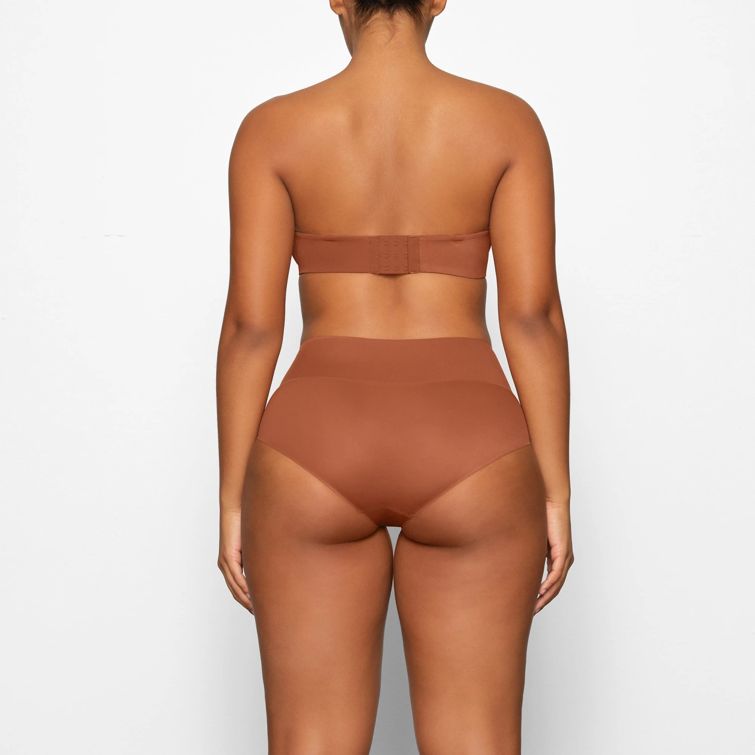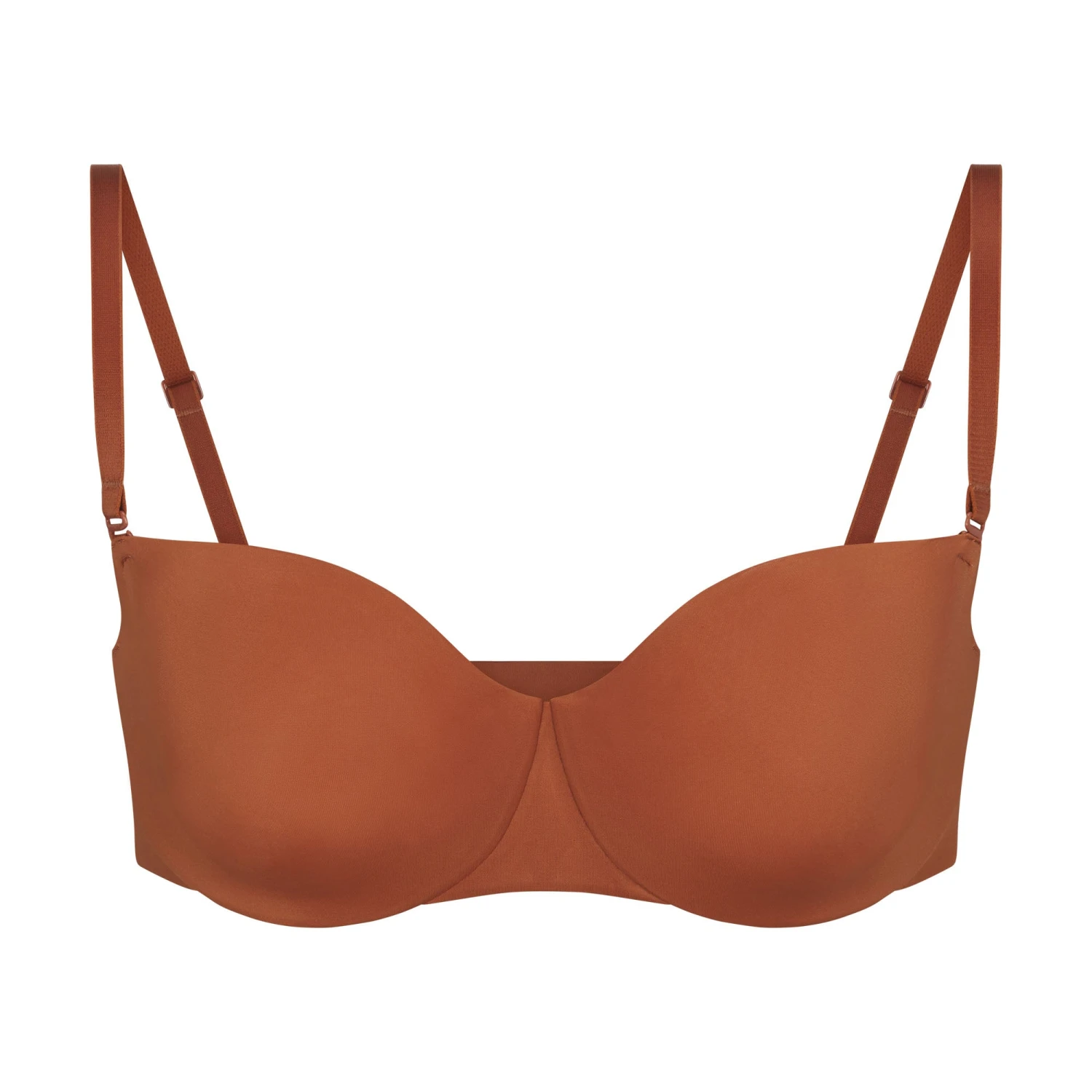 is a double layered solution with comfortable hidden cushion underwire and ultra-wide wings that perfectly smooth your back and sides. Features silicone tape along the neckline and wing to keep it in place all day long, smoothing adjustable straps, and a hook and eye back closure. Fits true to size.