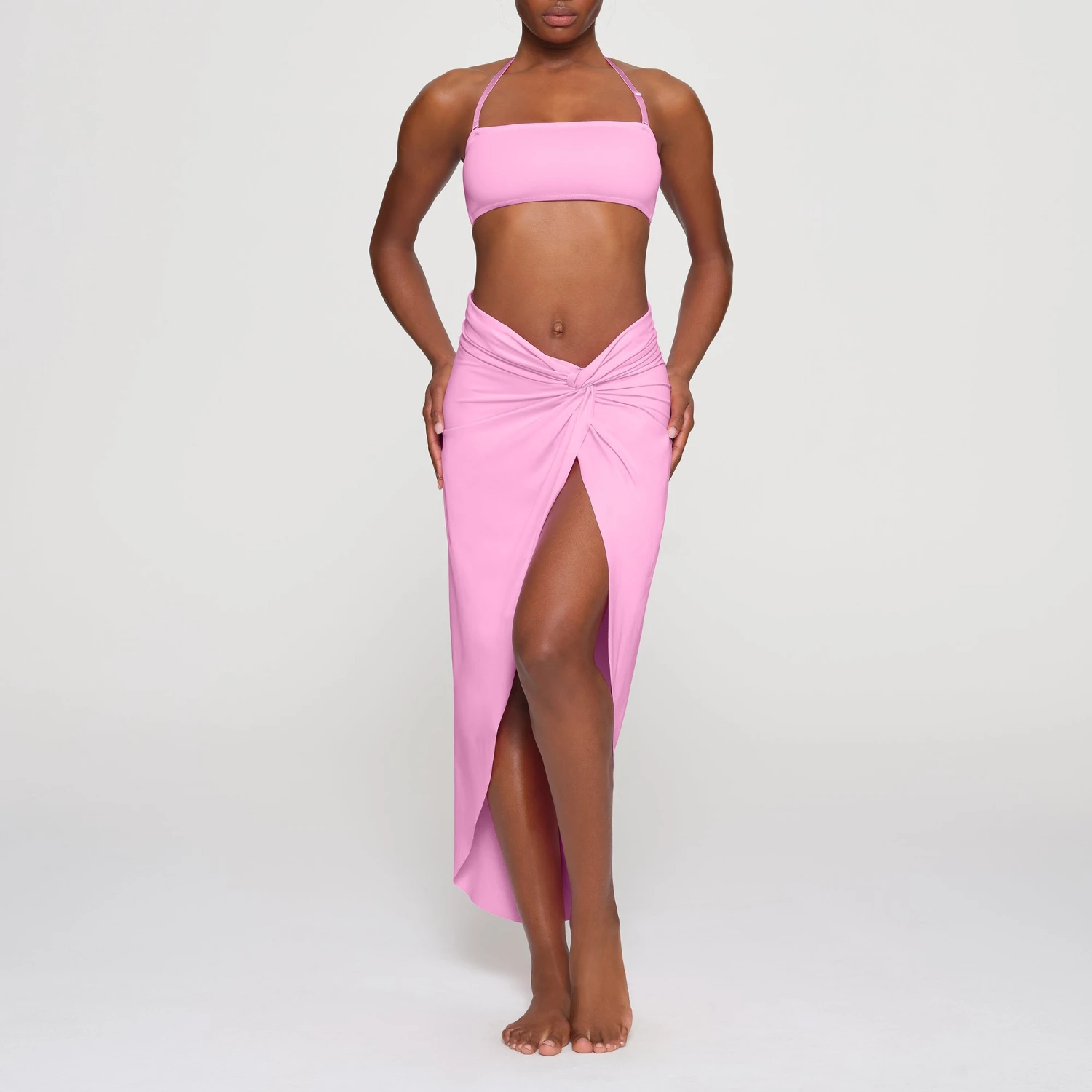 style. Perfect for the beach and beyond, this top also features a detachable halter strap for additional styling options. Fits true to size. Fabric is sheer once wet.