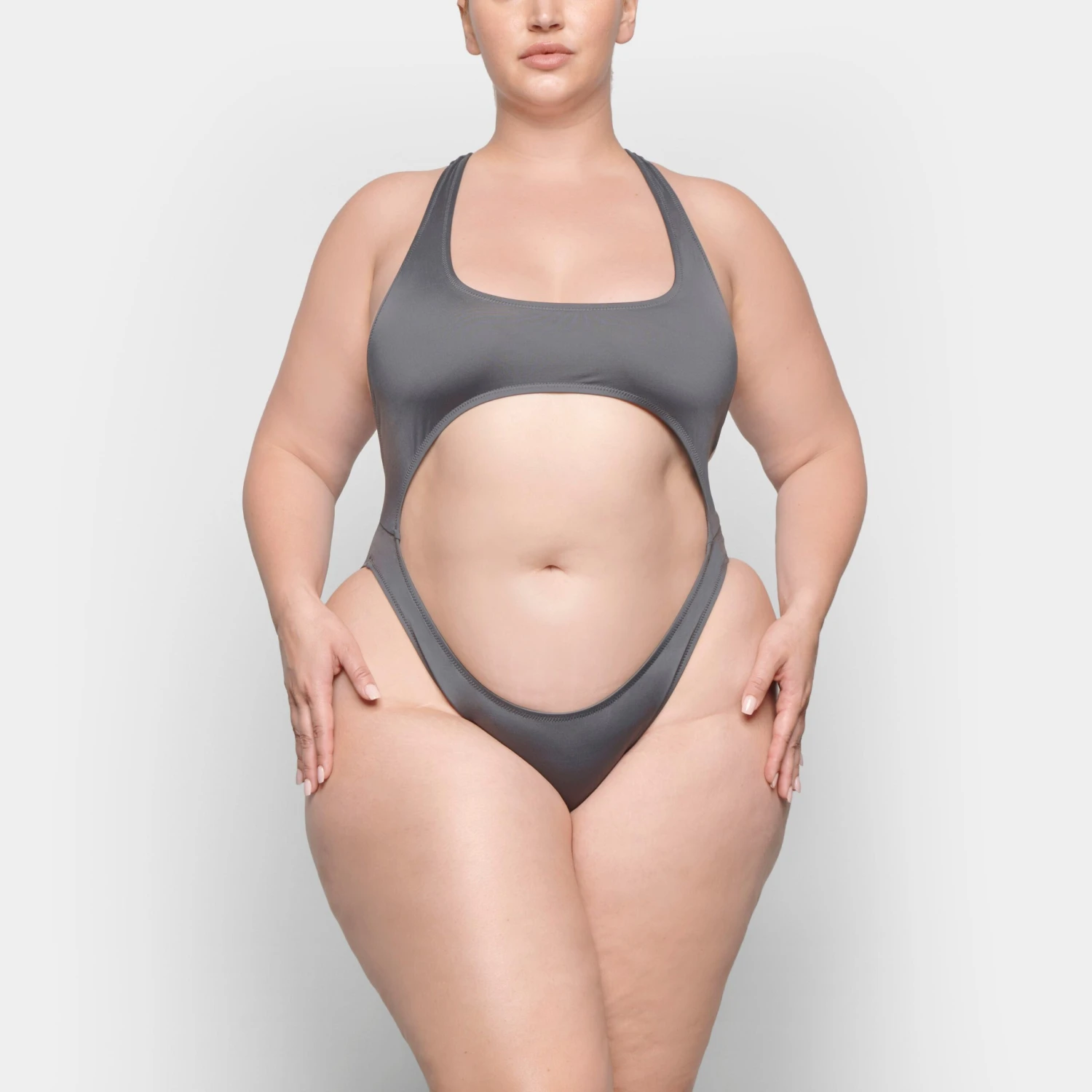 features an ultra-flattering scoop neckline and bold cut-outs. Fits true to size.