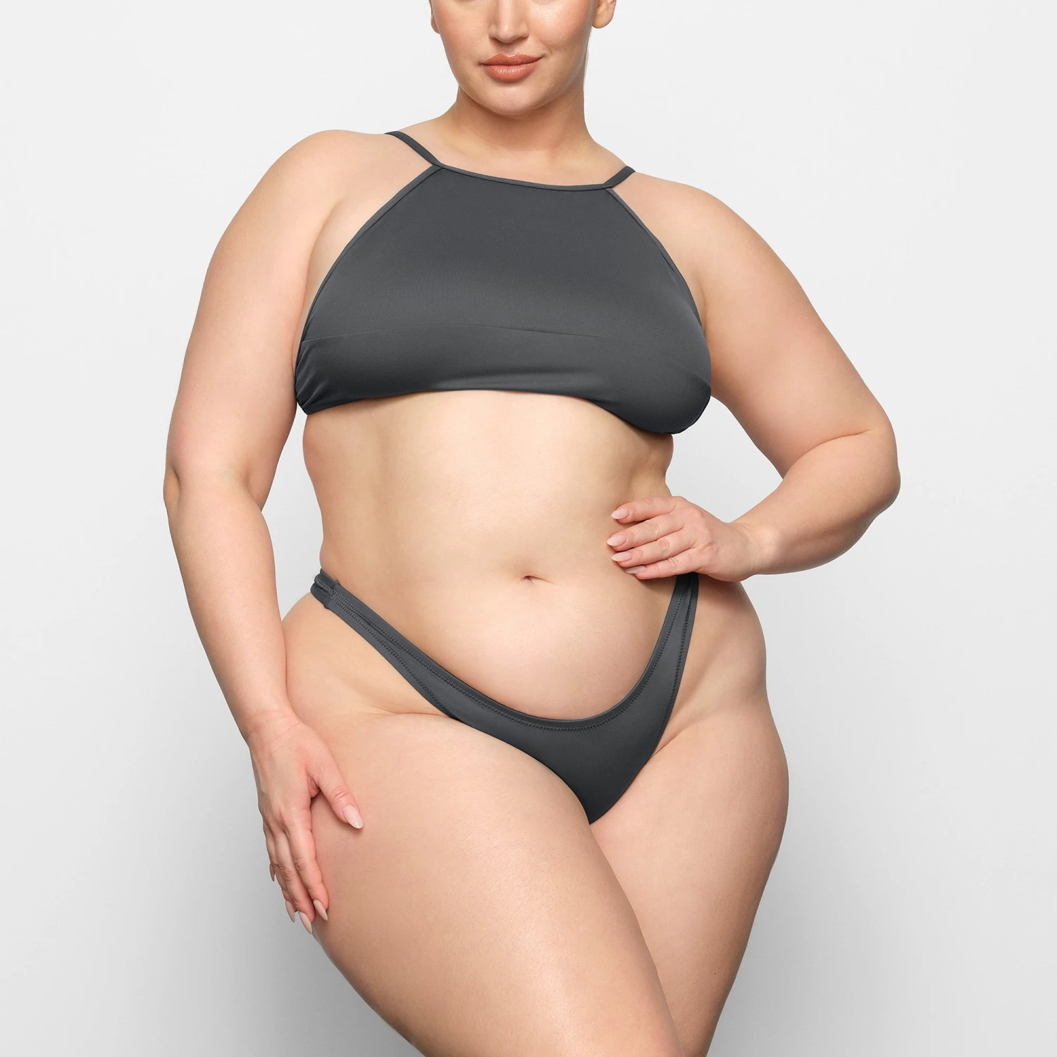 style with sexy open-back details and a center-back tie for adjustability. Fits true to size.
