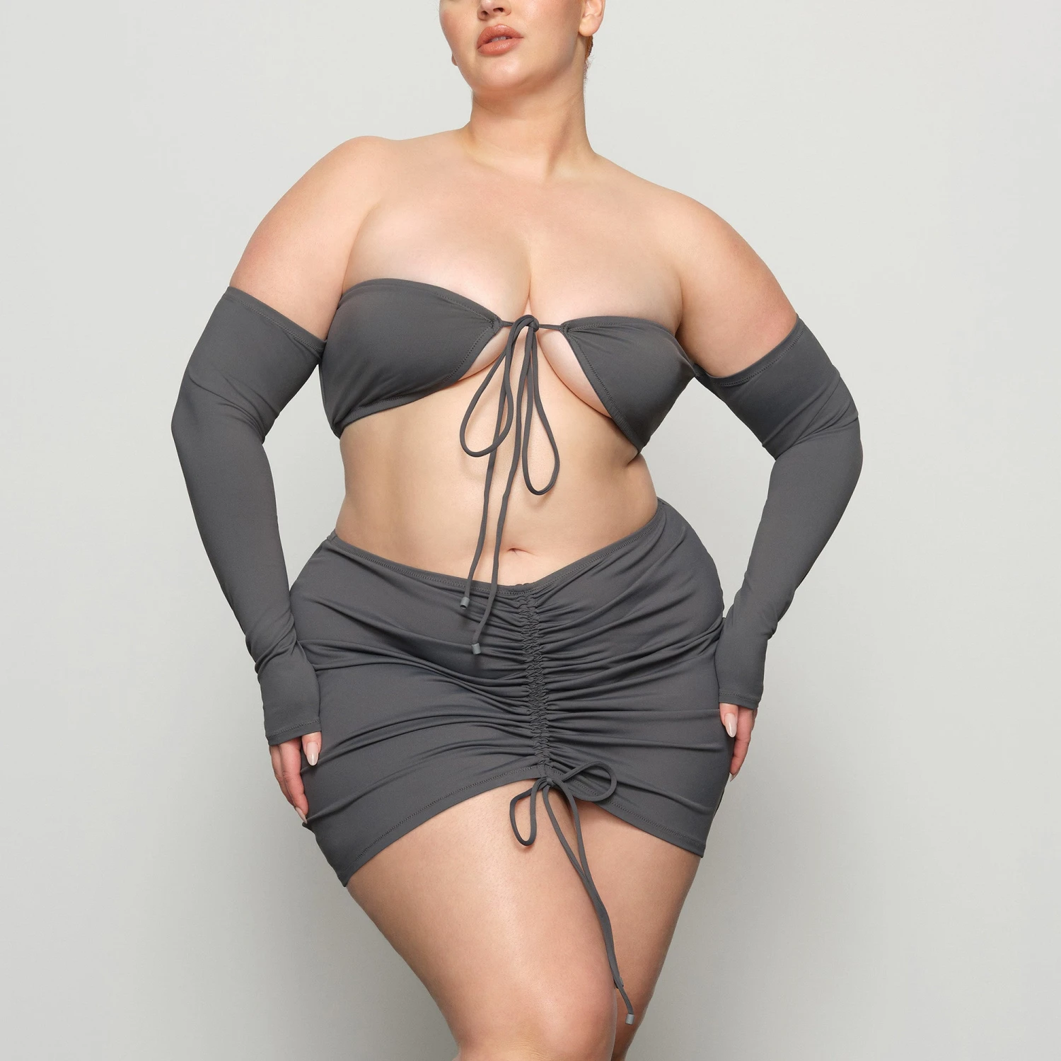 with a sweetheart neckline and silicone elastic to keep it all in place. Features an adjustable front tie. Size up for a comfortable fit.