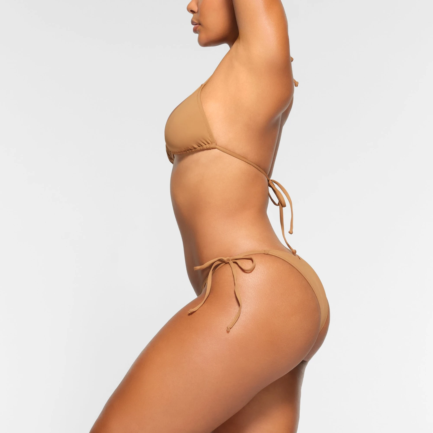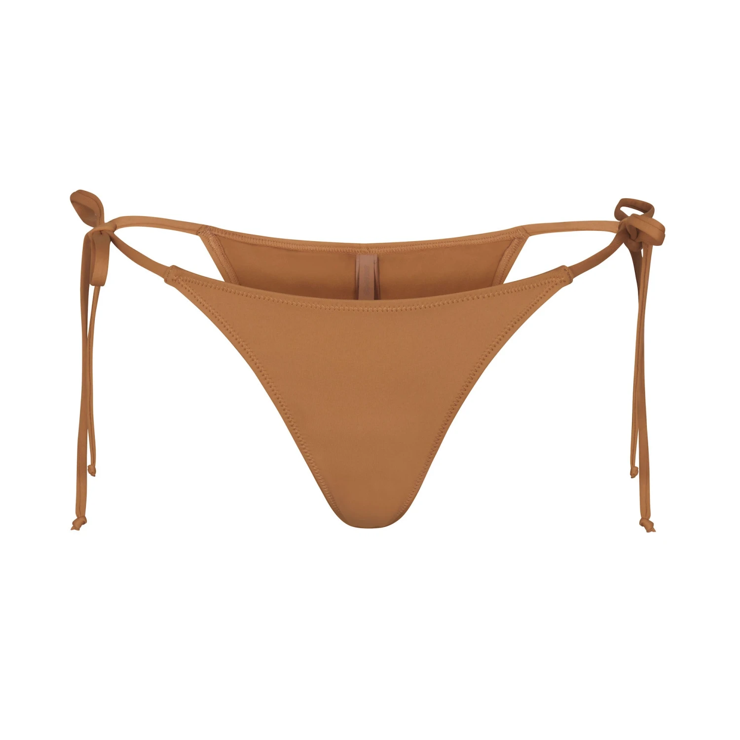 has a low-rise front and cheeky back coverage for a sexy look. Features side ties for adjustability. Fits true to size.
