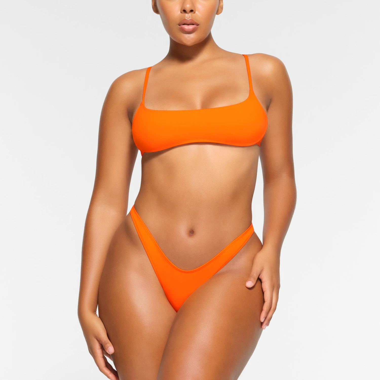 . Features non-adjustable straps, a back tie for adjustability, and micro coverage. Fits true to size.