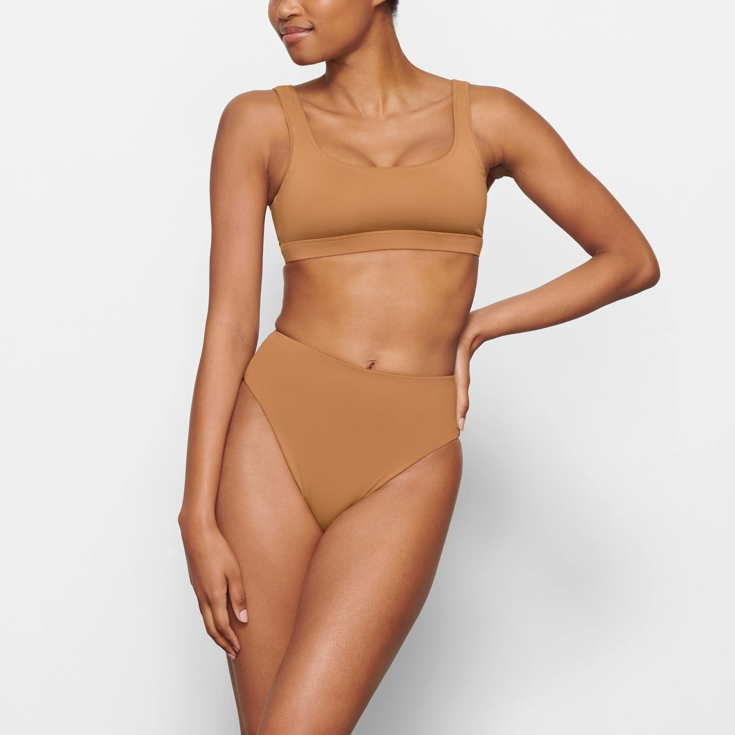 classic. Featuring medium back coverage and a mid-rise fit, this silhouette is perfect for added coverage on tummy and butt while featuring high-cut sides that elongate your legs. Fits true to size.