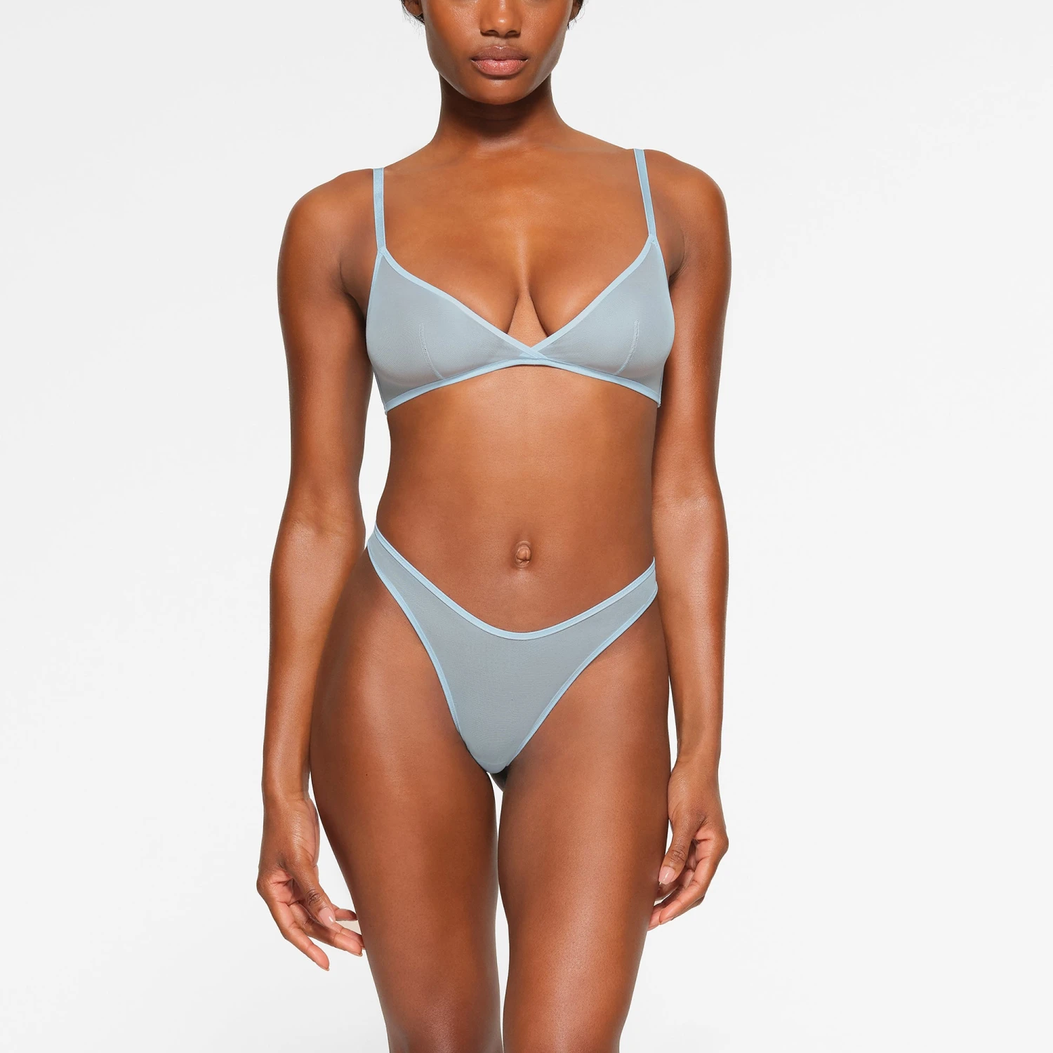 has a dipped front and feels like you’re wearing nothing at all. Fits true to size.