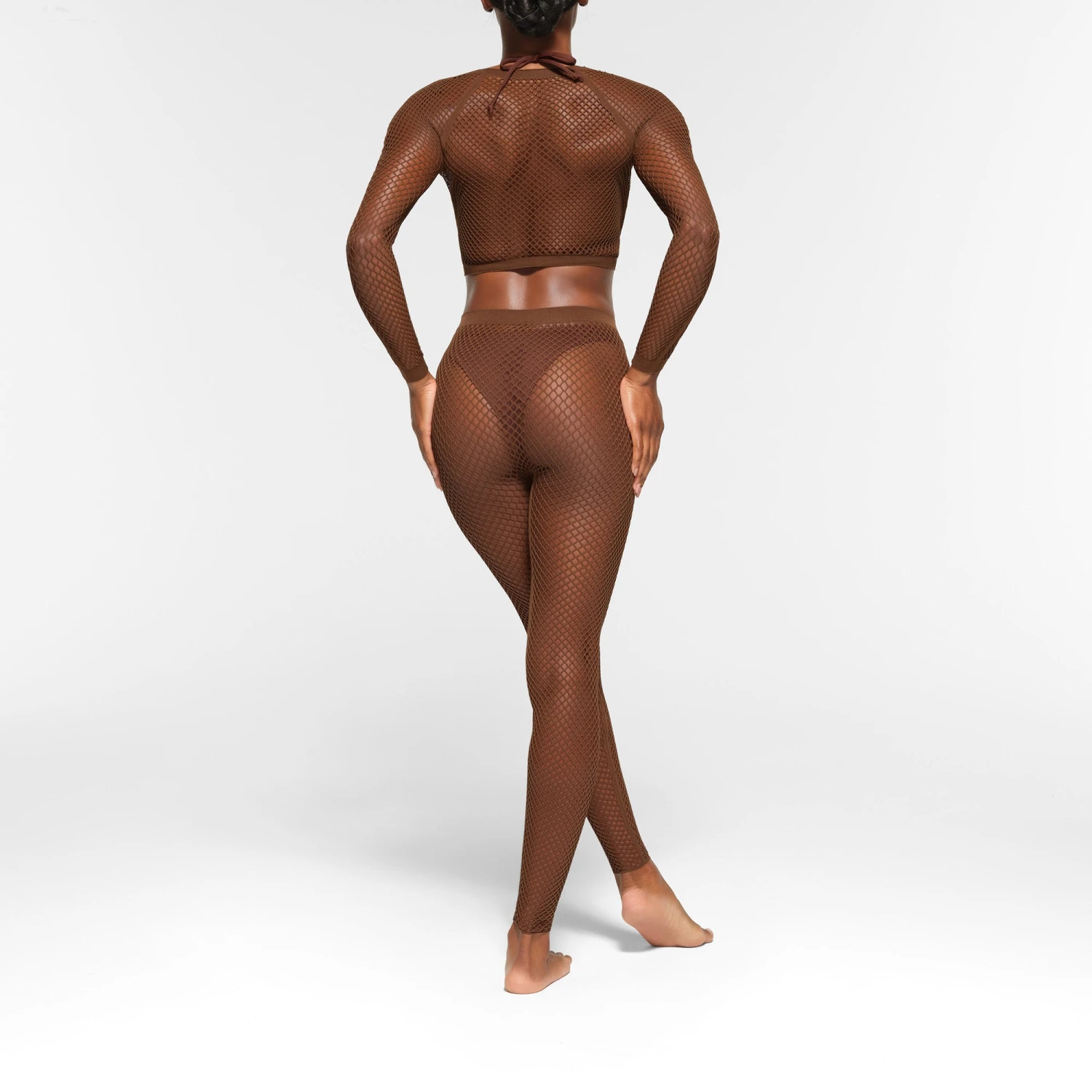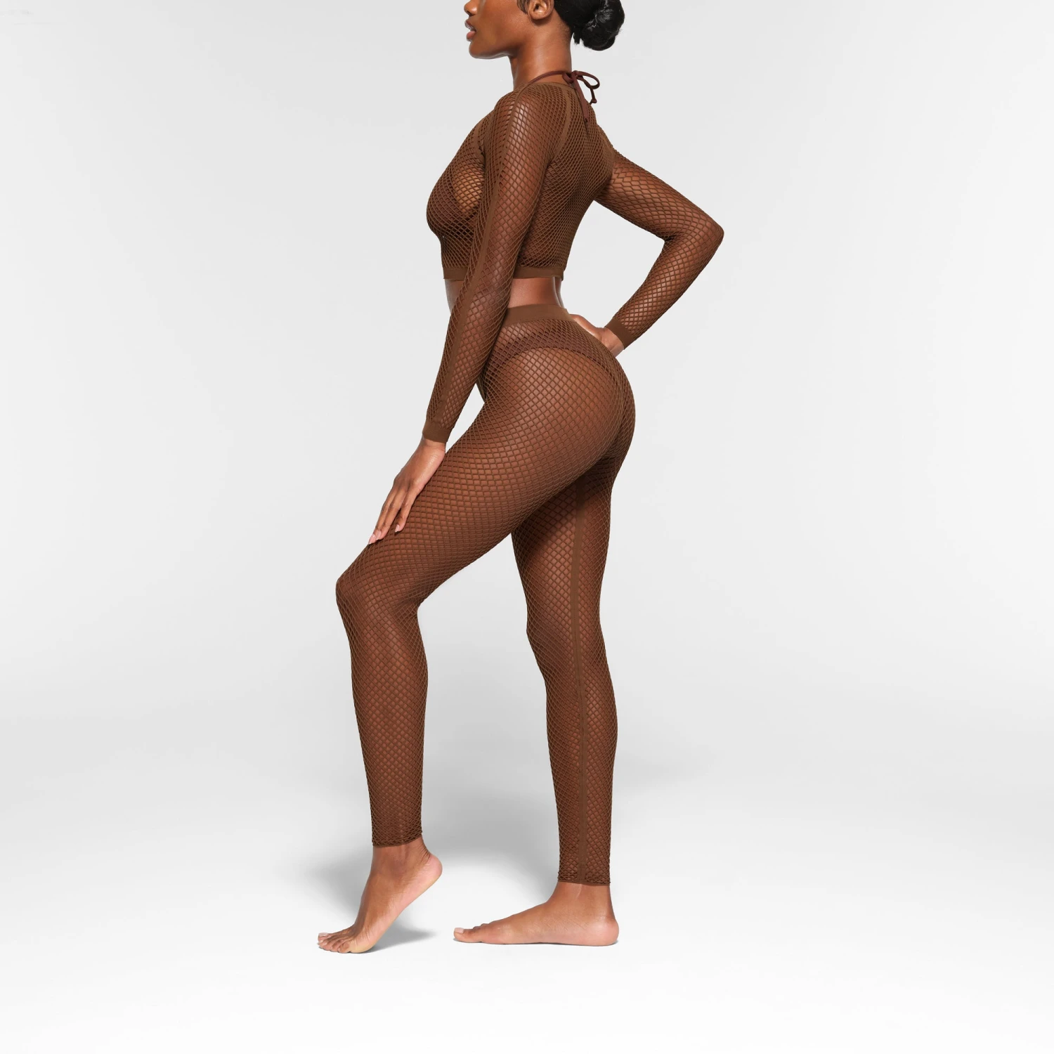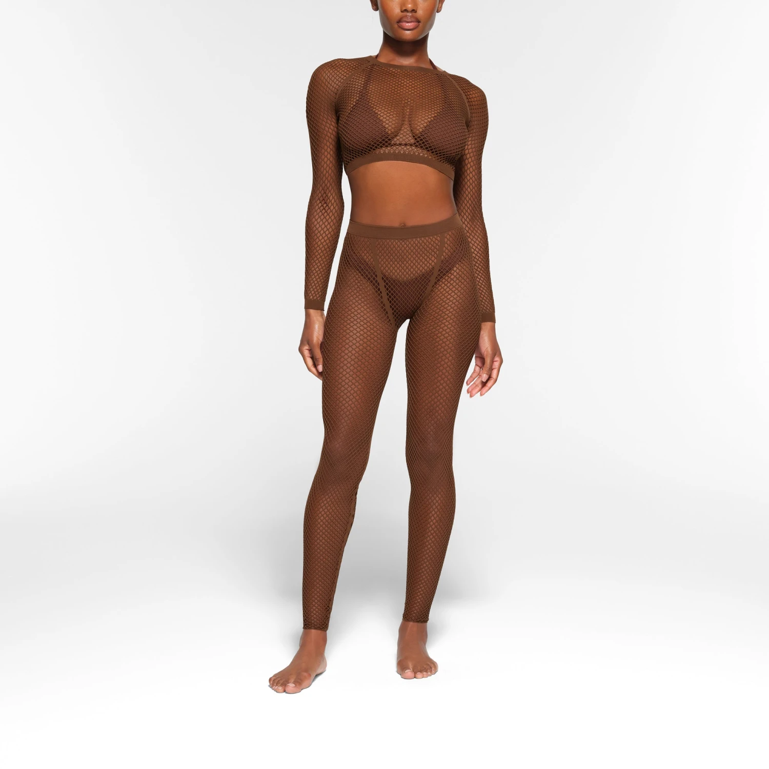 has a comfortable, stretchy all-over open knit design for a perfectly edgy look. Pair with the coordinating