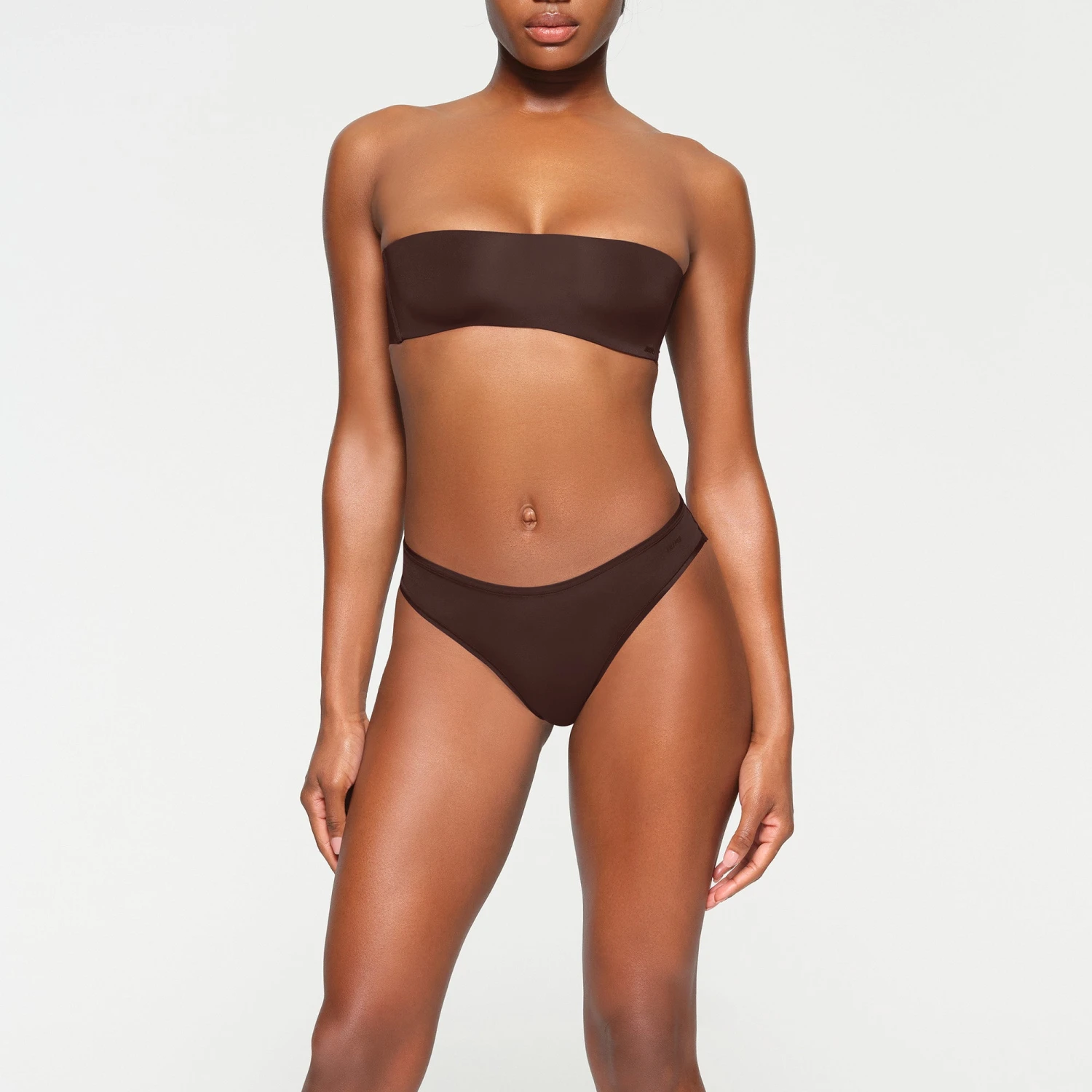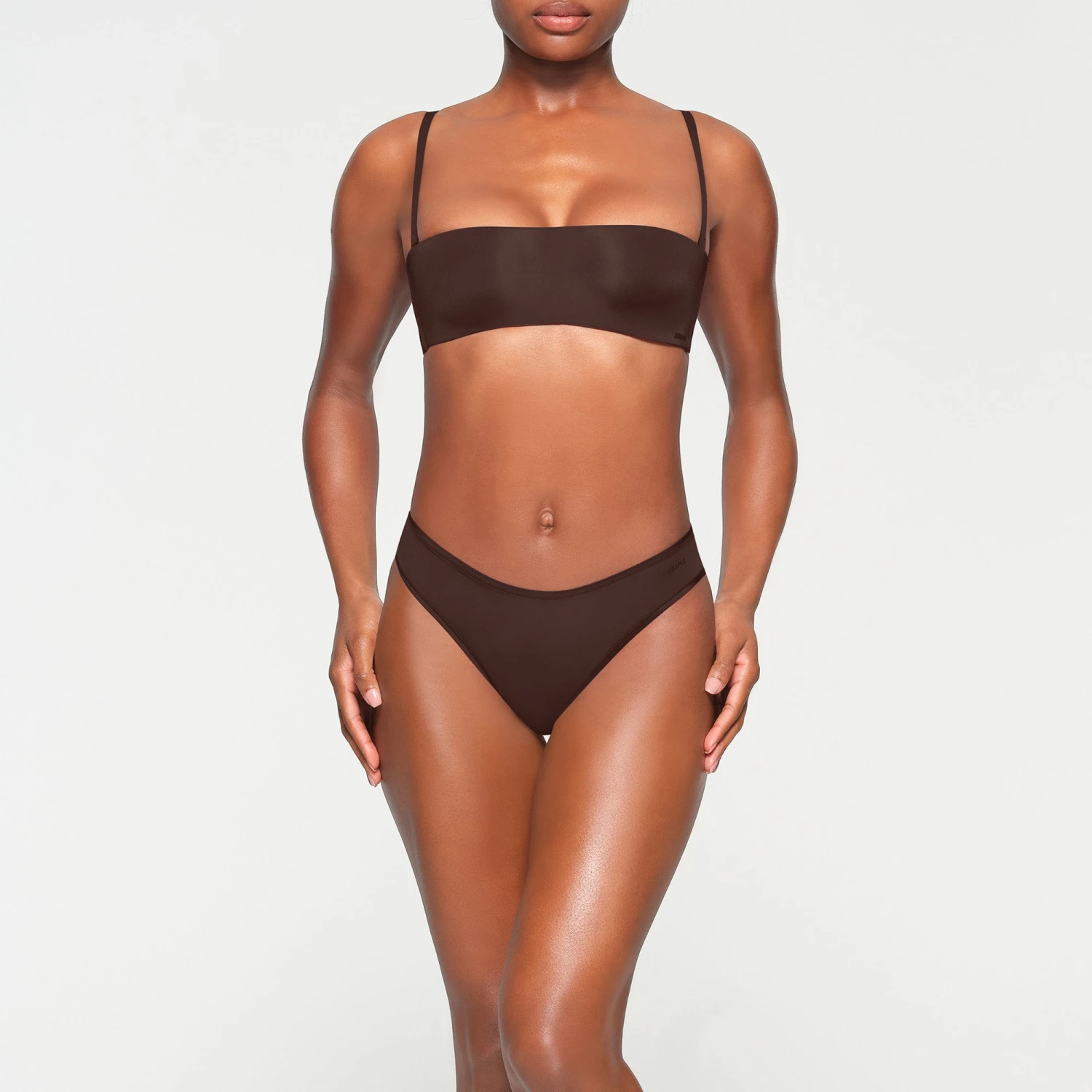 This ultra-comfortable strapless solution has lightly lined, lightweight foam pads that flatter your bust and wide wings that smooth your back. Features removable adjustable straps that can be worn multiple ways, a tonal silicone SKIMS logo on the front wing, and a hook and eye back closure. Fits true to your