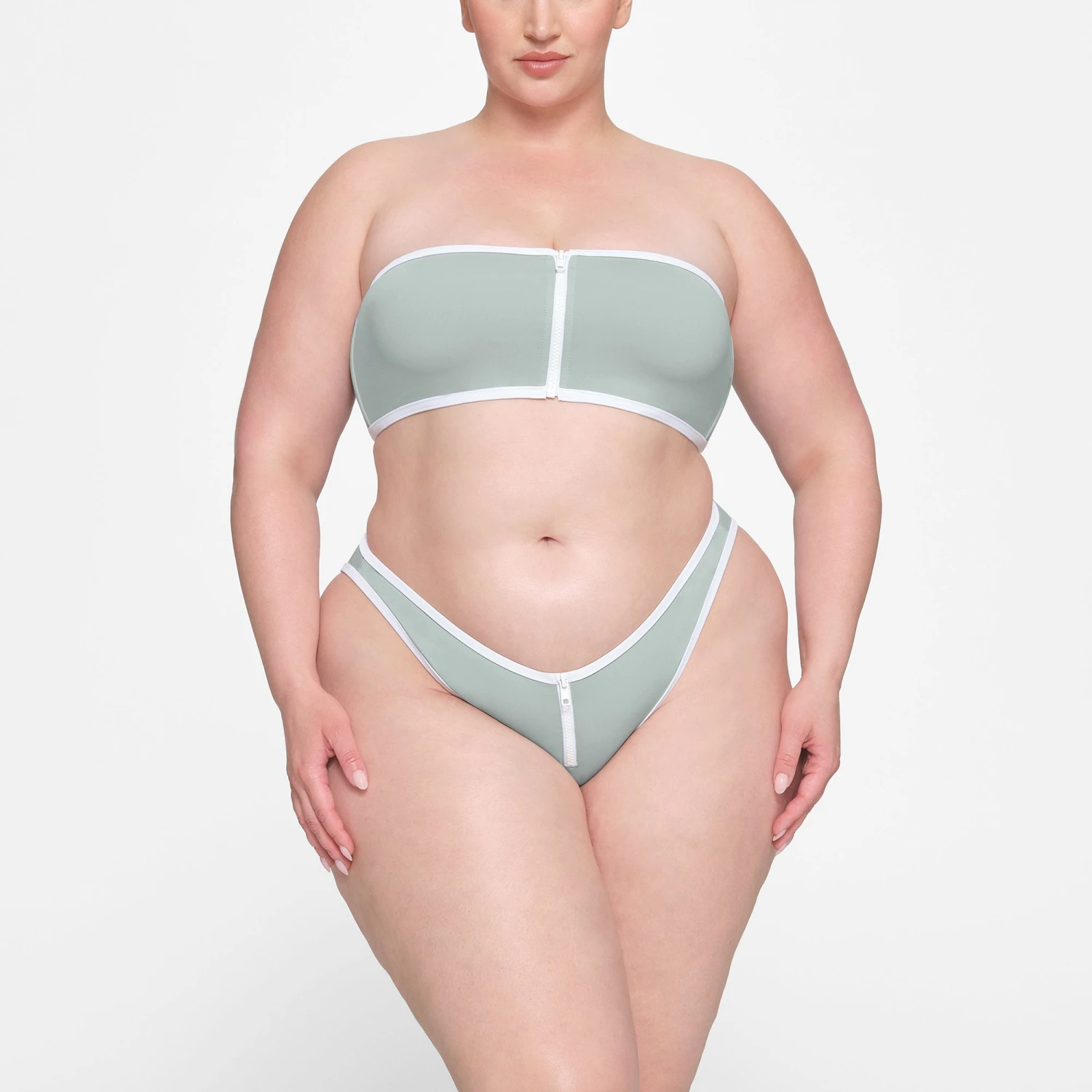. Features a center front zipper and silicone along the top and bottom to keep it in place. Make it a set with the coordinating